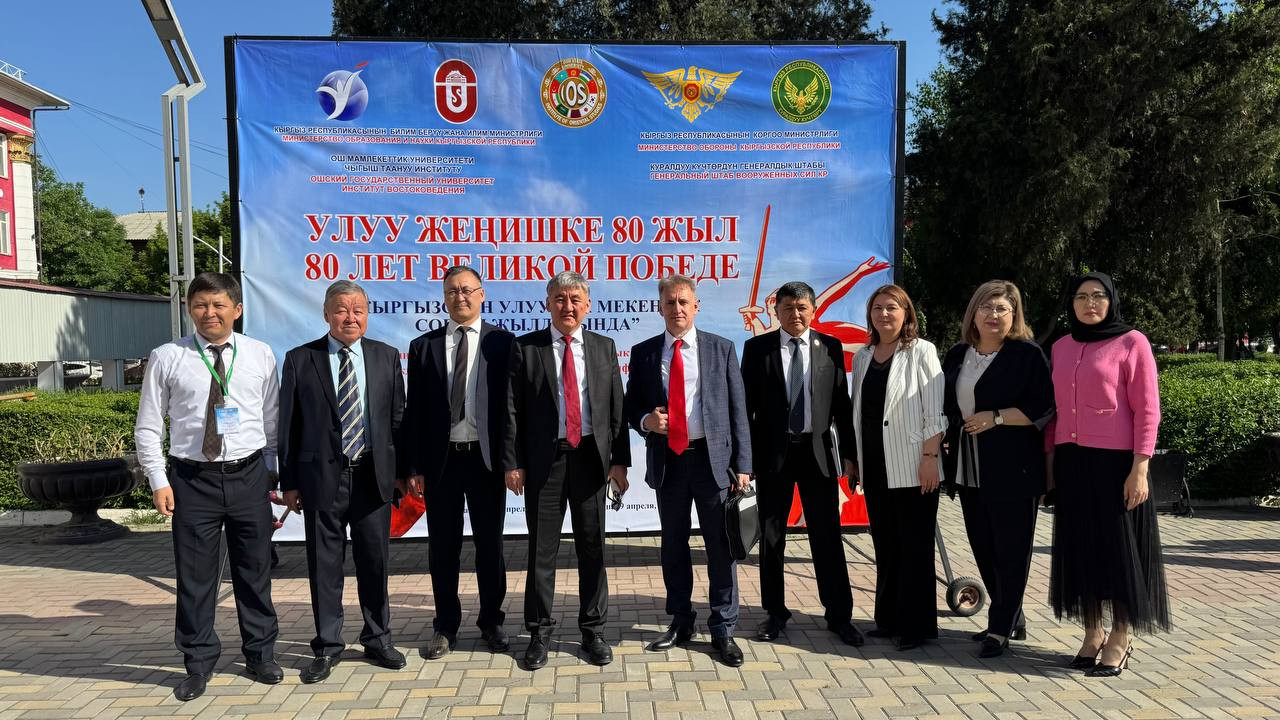 Osh State University hosted an international scientific and practical conference today, April 29, marking the 80th anniversary of the Great Victory. The event, titled “Kyrgyzstan during the Great Patriotic War,” brought together historians, military representatives, Collective Security Council members, local authorities, and faculty and students from Uzbekistan, Kazakhstan, Tajikistan, and Russia.