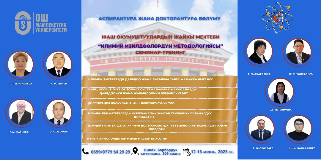 The Department of Postgraduate and Doctoral Studies is organizing a training seminar as part of the Summer School for Young Scientists, scheduled for June 12-13, 2025. The seminar will focus on the topic "Scientific Research Methodology" and is open to postgraduate students, doctoral candidates, and researchers.