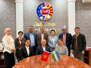 A delegation from Namangan State University (NSU), led by the Dean of the Faculty of World Languages, Kosim Sidikov, visited Osh State University from April 21 to 22. The group of eleven representatives familiarized themselves with the academic activities, faculty members, infrastructure, and student life at the Kyrgyz-Chinese Faculty.