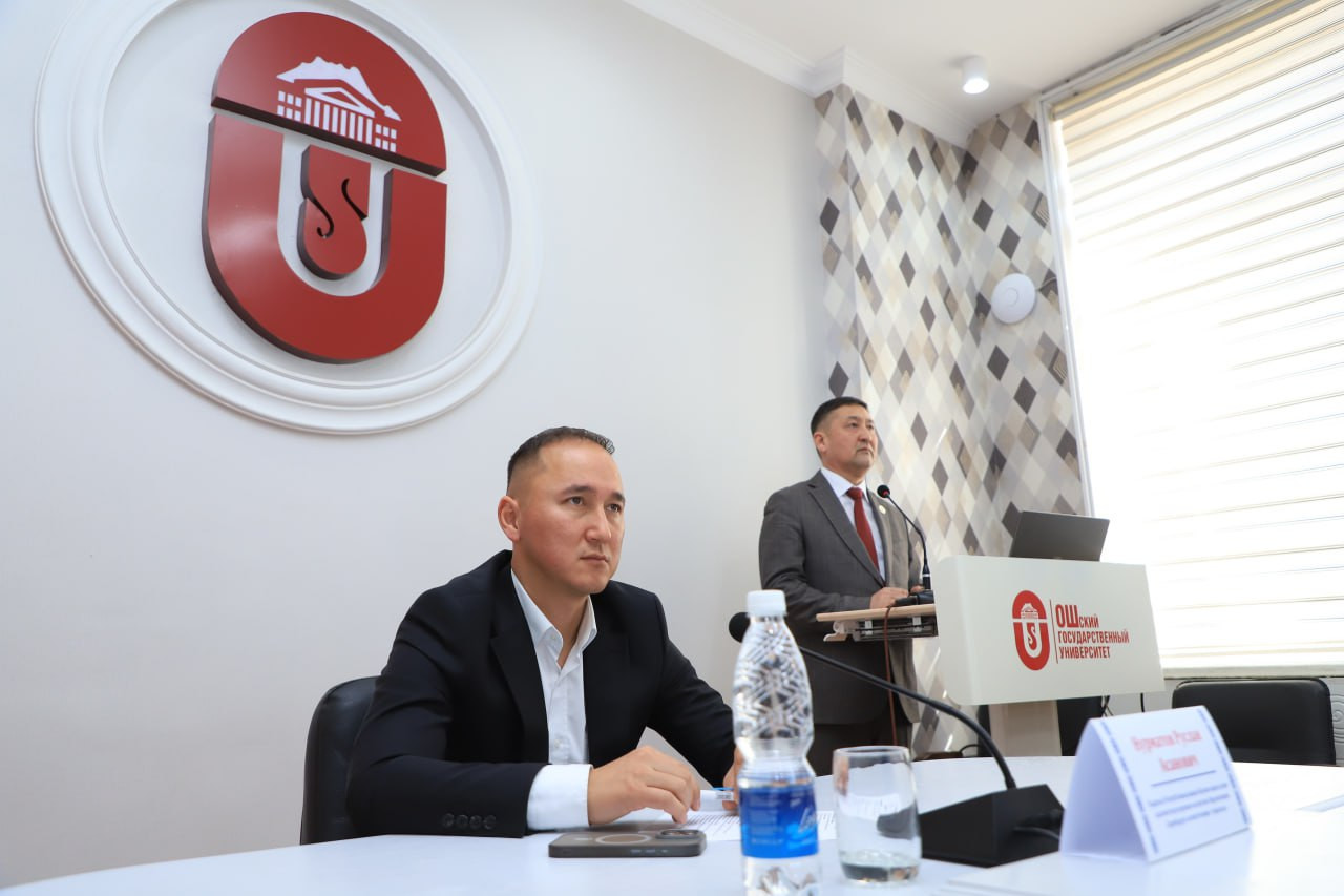 Борбордук комитетинин төрагасы Рустам Нурматов жана комитеттин башкы укук жана эмгекти коргоо инспектору Бедил Кадыркулов 18-мартта ОшМУда болушту.