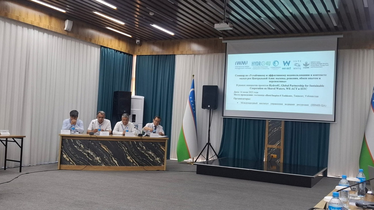 16-17-июнь күндөрү Ташкент шаарында өткөн иш-чара Суу ресурстарын башкаруунун эл аралык институту (IWMI-CA), Hudro4U, Global Partnership for Sustainable Cooperation on Waters, WE-ACT жана ISTS долбоорлорунун алкагында уюштурулду.