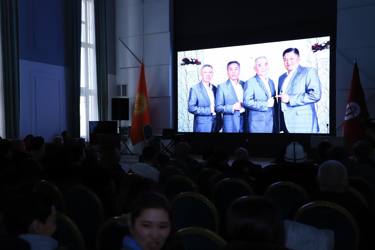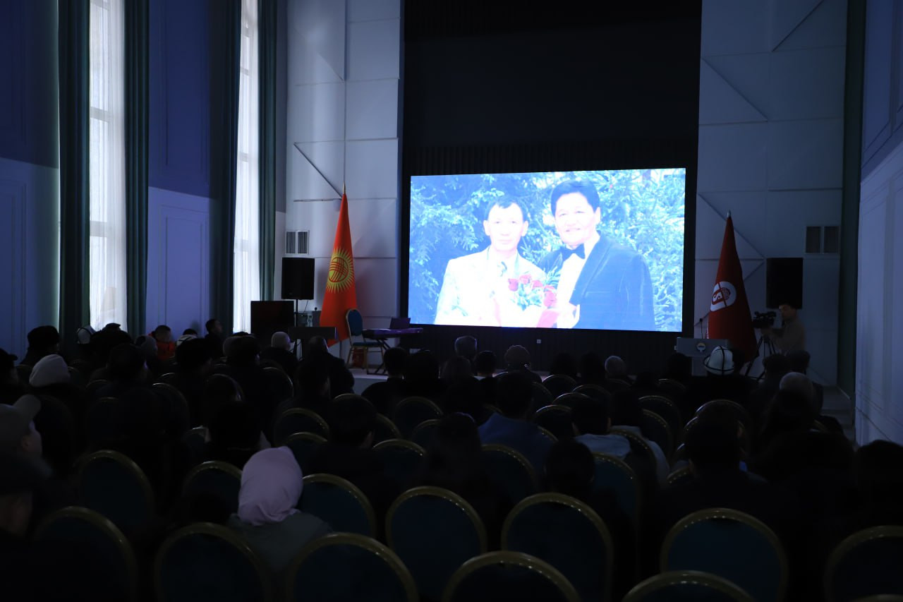 The screening was attended by Osh State University’s Vice-Rector for Public Work and Youth Policy, Nurzhamal Mapaeva, along with faculty members, students, close colleagues, and protégés of Kozhomzharov.