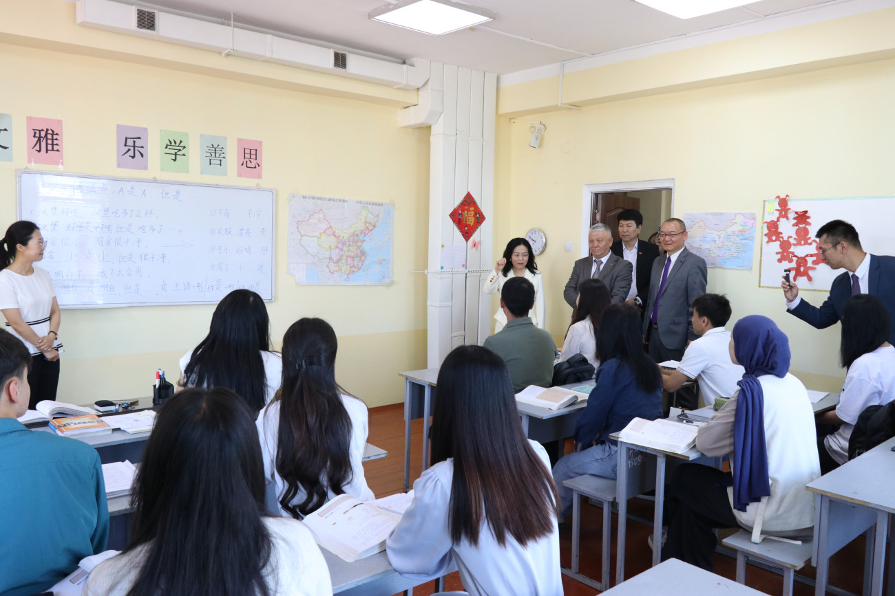 During the visit, Ambassador Liu toured the academic facilities and engaged in discussions with the faculty's staff. In his remarks, he emphasized the distinctive role of Osh State University in fostering Kyrgyz-Chinese relations and expressed a strong interest in deepening cooperation. He also praised the students for their impressive proficiency in the Chinese language.