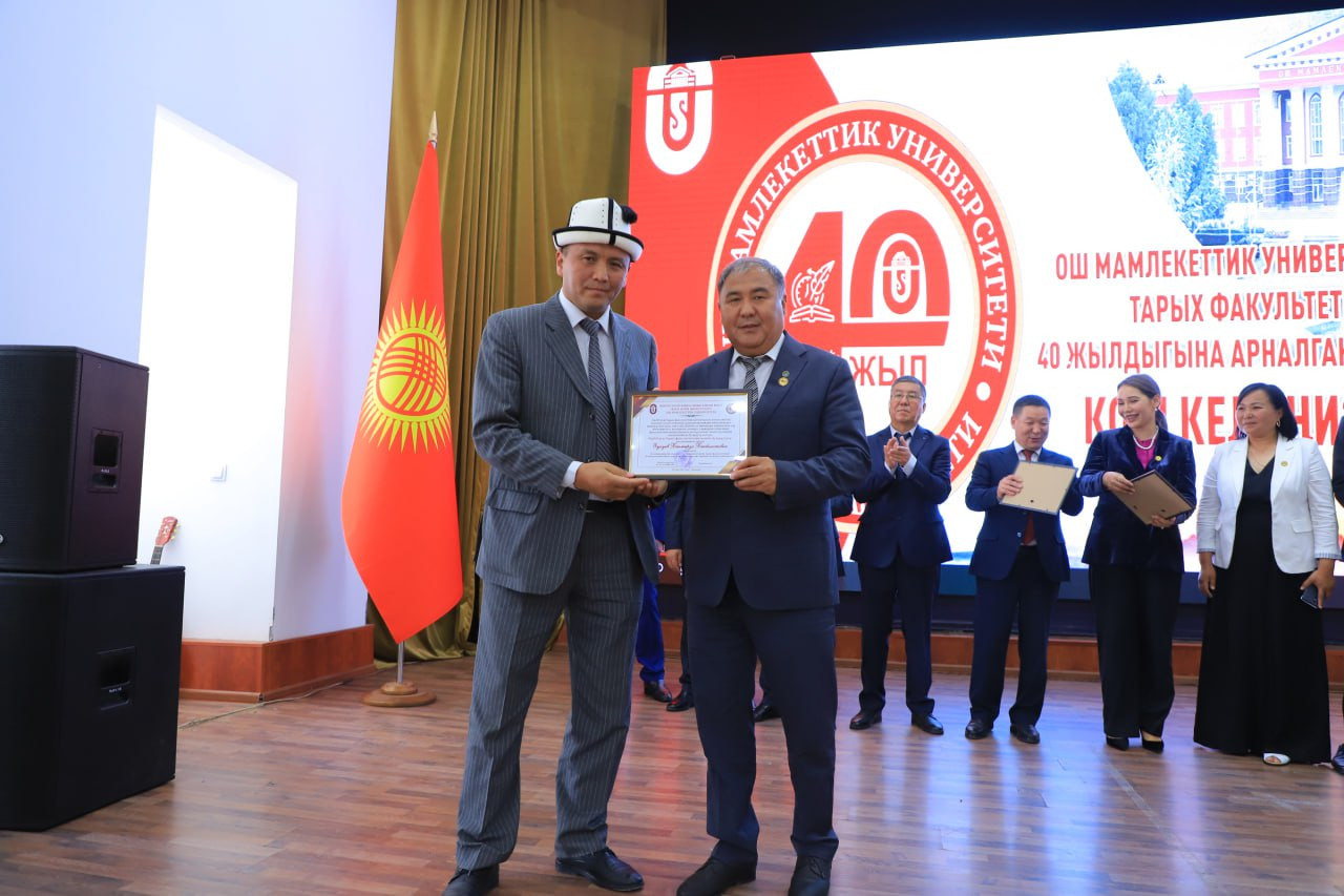 During the event, outstanding teachers of Osh State University received national and municipal honors, while distinguished alumni were recognized with the title “Best Graduate of the Faculty of History.” A scientific-practical conference titled “Heritage and Future of Historical Education in Kyrgyzstan” was also held as part of the anniversary program, featuring scholarly presentations.