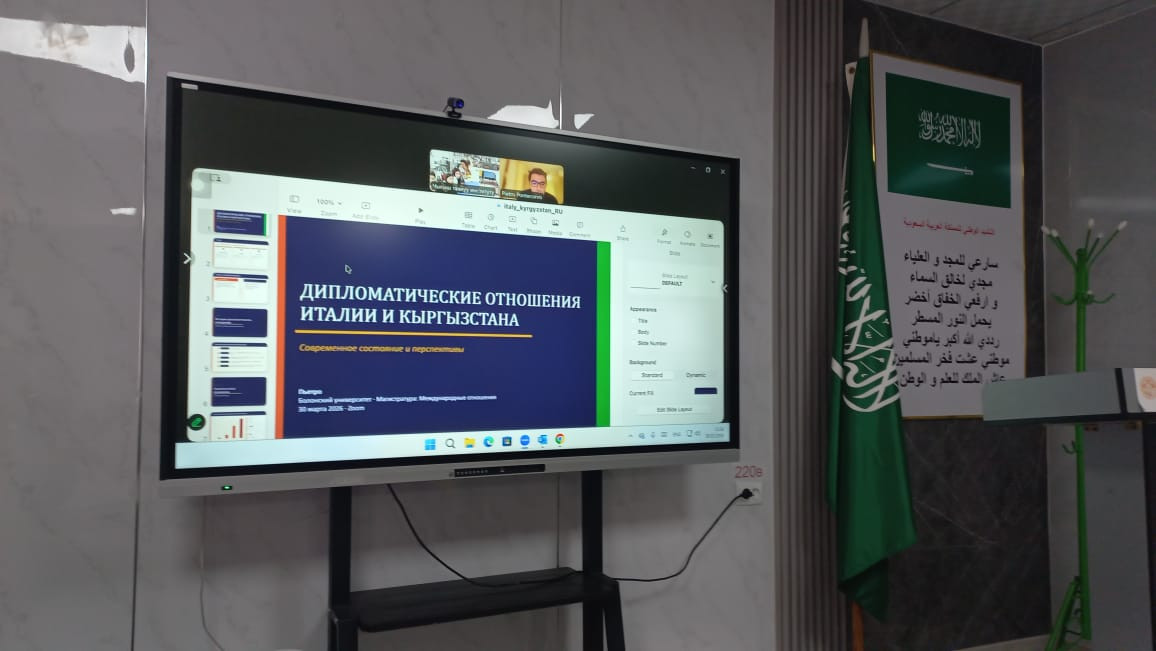 His lecture on “Diplomatic Relations between Kyrgyzstan and Italy” covered the development of diplomatic ties, cultural and scientific cooperation, and current issues. Participants asked questions, and the institute’s director, Joldoshbek Bötöneev, expressed gratitude to the lecturer.