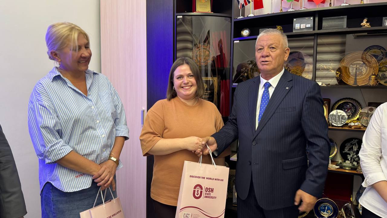 Ош мамлекеттик университетинин Педагогика, искусство жана журналистика институтунун окутуучусу Мээргүл Асаналиева окуу жайдын борбордук китепканасына 100 китеп белек кылды. Бул китептер ага Оштогу “Русский дом” тарабынан өткөрүлгөн “Аялдар дүйнөнү өзгөртөт” аттуу сынакта баш байгени жеңип алгандан кийин тапшырылган.