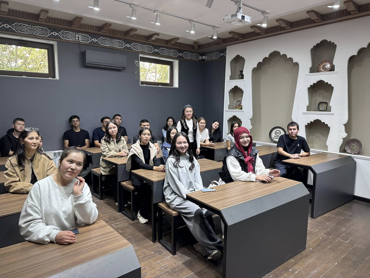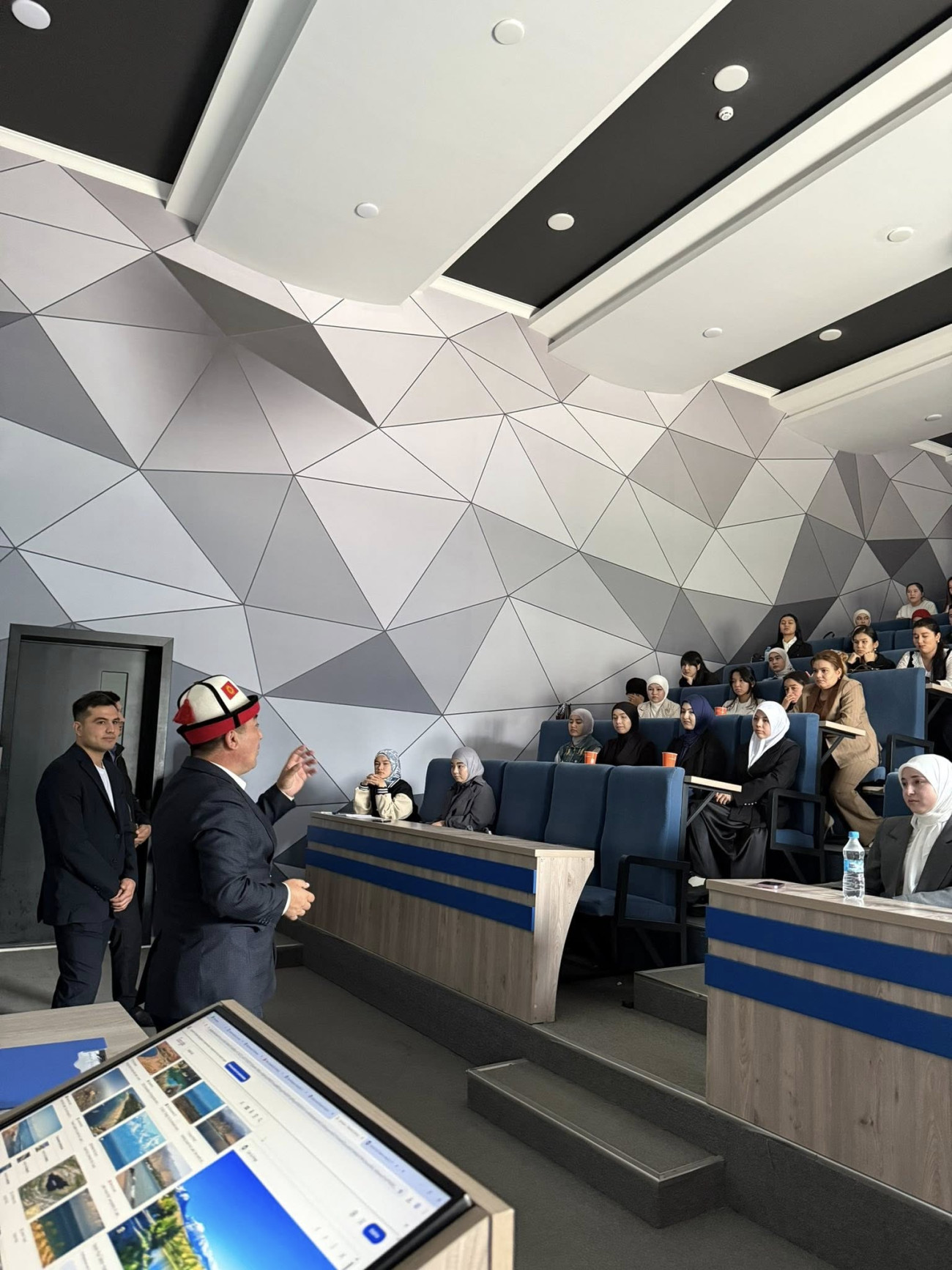 During the visit, Zhanarbek Sultanov, Senior Inspector of the Internship and Career Center at Osh State University, delivered a guest lecture for Kokand University students. He spoke about tourism development in Kyrgyzstan, highlighting its potential, opportunities, and favorable conditions for growth.