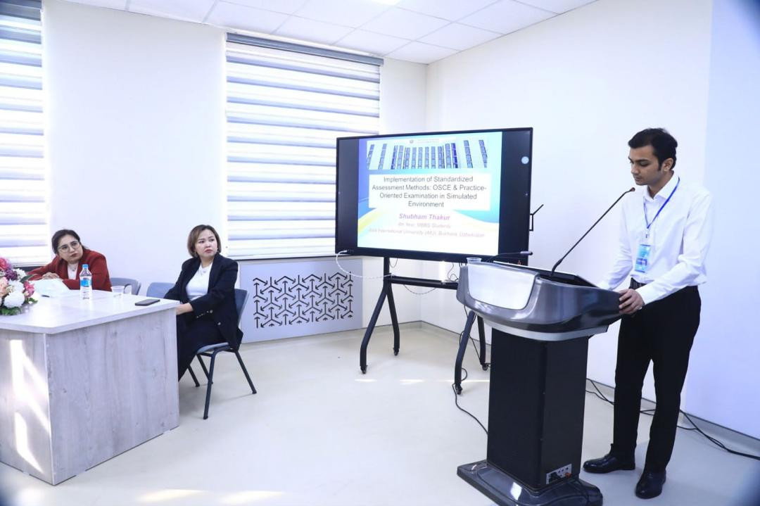 In addition, Oybek Azimov introduced the report “Virtual Patients: Experience of Their Use in the Final Assessment of Students at the International Medical Faculty,” while Begimai Muktarali kyzy and Altynai Nuralieva presented “The K Plus Virtual Simulator: New Opportunities in Teaching International Students.”
