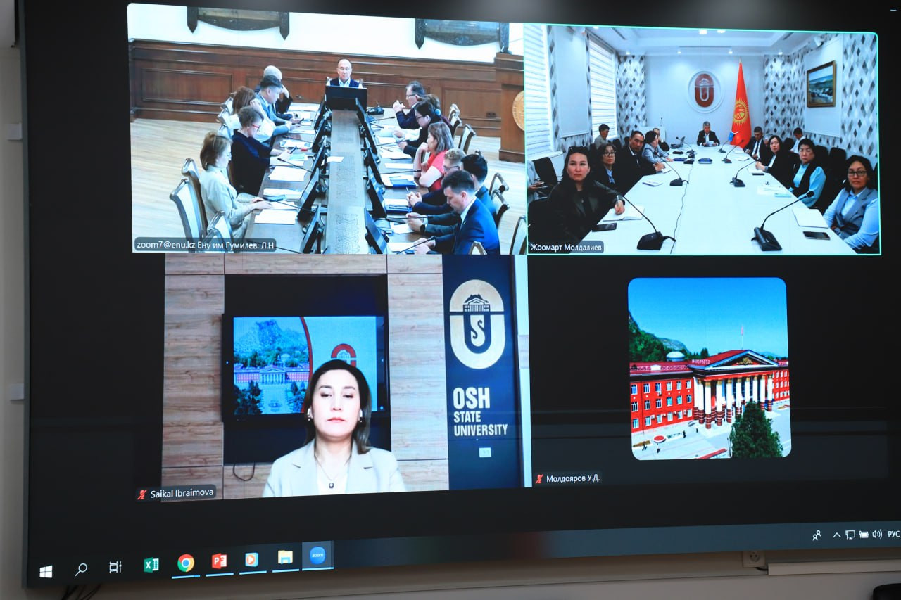 Казакстандагы Л.Н.Гумилев атындагы Евразия улуттук университетинин ректору Ерлан Сыдыков ОшМУнун ректору Кудайберди Кожобеков жетектеген структура жетекчилери менен онлайн форматта 28-апрелде жолукту. Анда тараптар жаңы окуу жылынан аталган окуу жайдын ОшМУдагы казак тили жана маданияты борборун кеңейтип, ОшМУнун базасында Евразия улуттук университетинин Ош шаарындагы филиалын ачуу боюнча сүйлөштү.