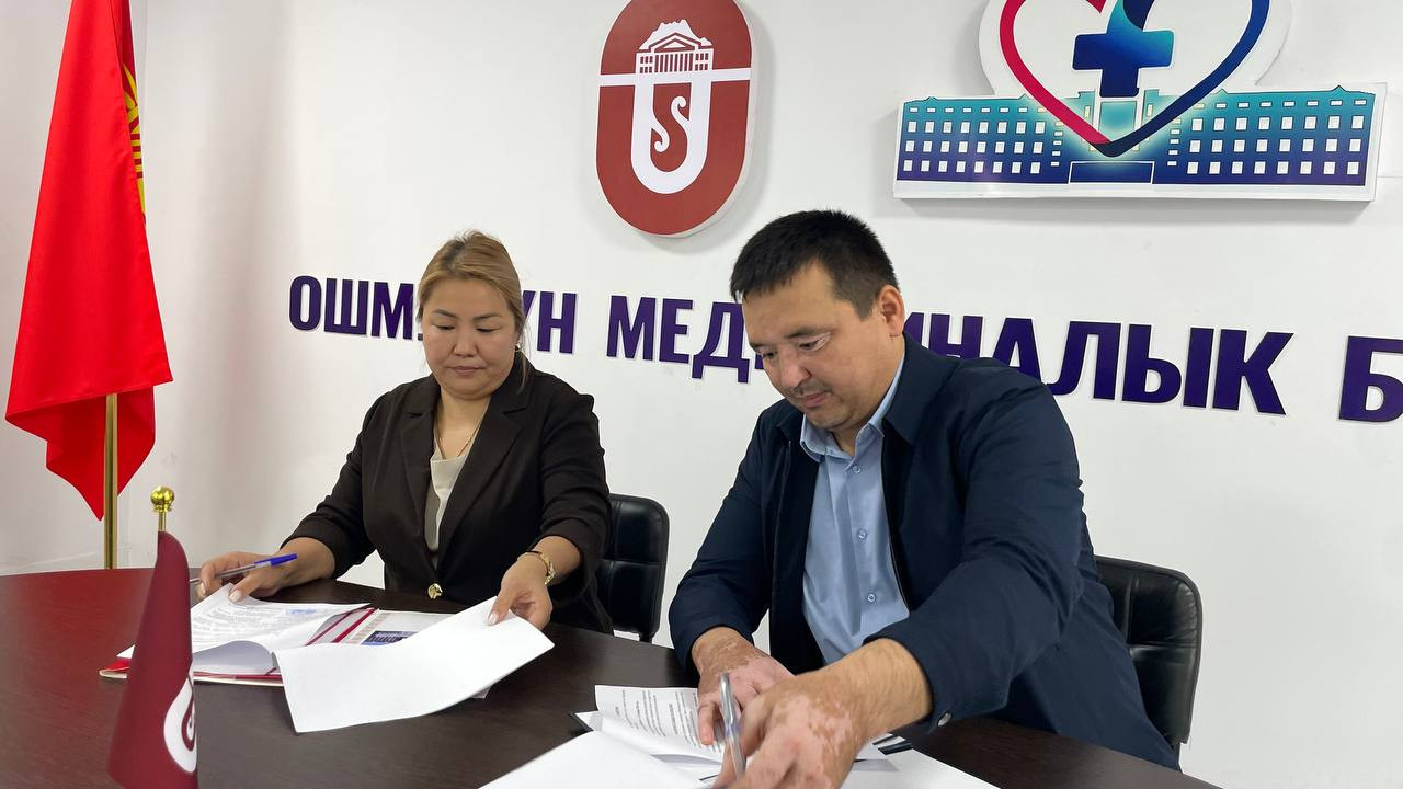 Бүгүн, 30-октябрда дарыгерлер окуу жайга келип тышкы байланыштар боюнча проректор Курсантбек Аттокуров, Медициналык клиниканын директору Жазгүл Иметова менен жолугушту. Тараптар аталган борбор менен ОшМУнун медициналык клиникасынын ортосунда эки тараптуу кызматташуу боюнча меморандумга кол коюшту.