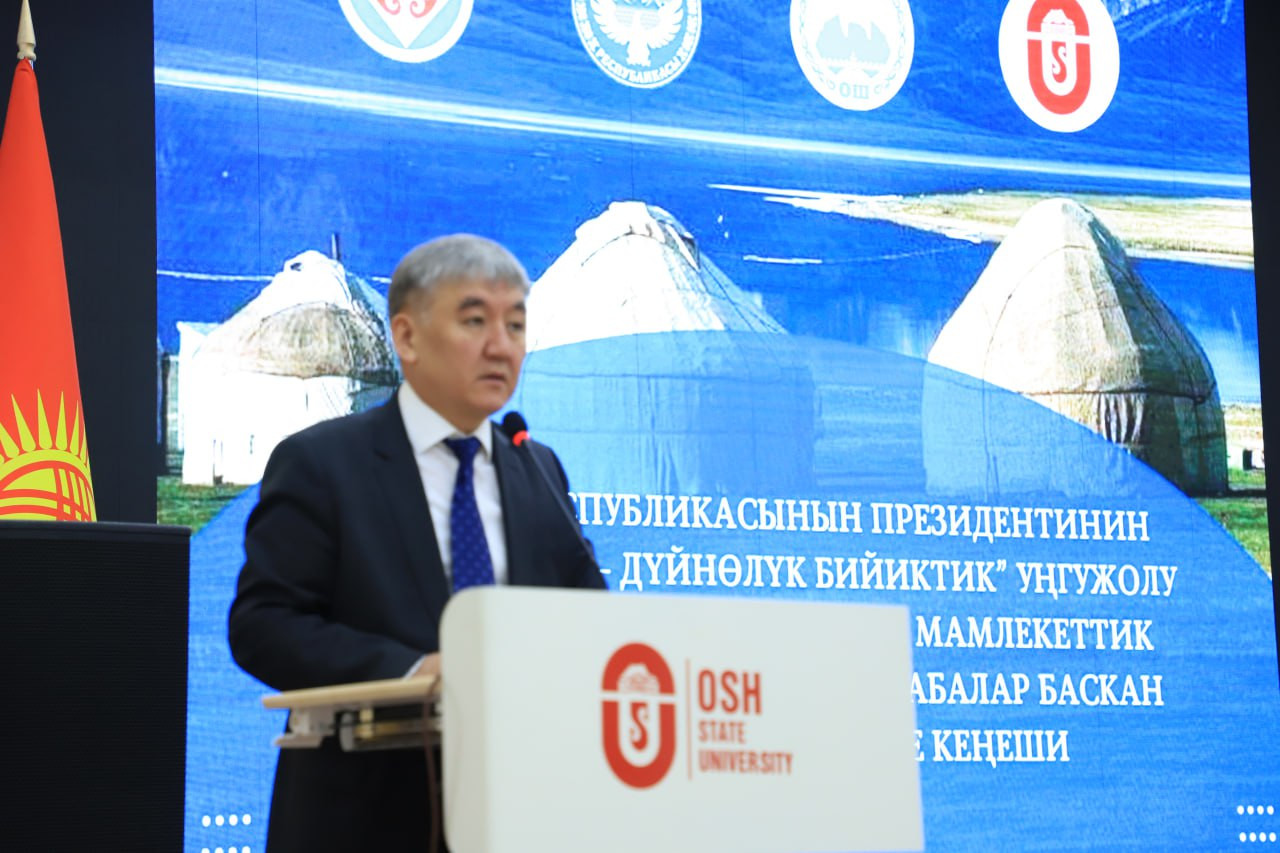 "Сегодня на встрече мы обсудили вопросы, определяющие наш путь к реализации указа, содержащего идеологические основы и стратегические направления развития страны. В дальнейшем наша работа в этом направлении будет продолжена",- сказала проректор ОшГУ по государственному языку и социальной работе Мастура Шарипова. 18 декабря 2024 года Президент Садыр Жапаров подписал указ "О Доктрине (Унгужол) «Национальный дух - мировые высоты», содержащий идеологические основы и стратегические направления, разработанные с целью обеспечения развития страны.