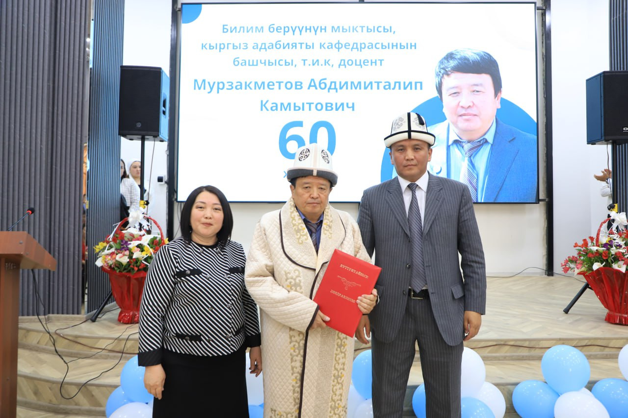 24 апреля в Ошском государственном университете состоялся научно-творческий вечер, посвященный 60-летию кандидата исторических наук, доцента, литературоведа, этнографа Абдымиталипа Мурзакметова. В мероприятии приняли участие ученые высших учебных заведений города Ош, профессорско-преподавательский состав Ошского государственного университета, студенты и близкие сотрудники.