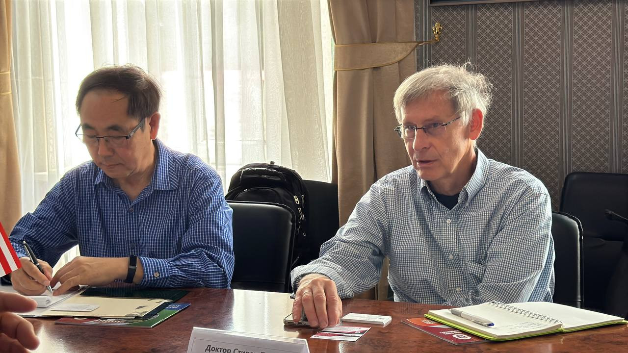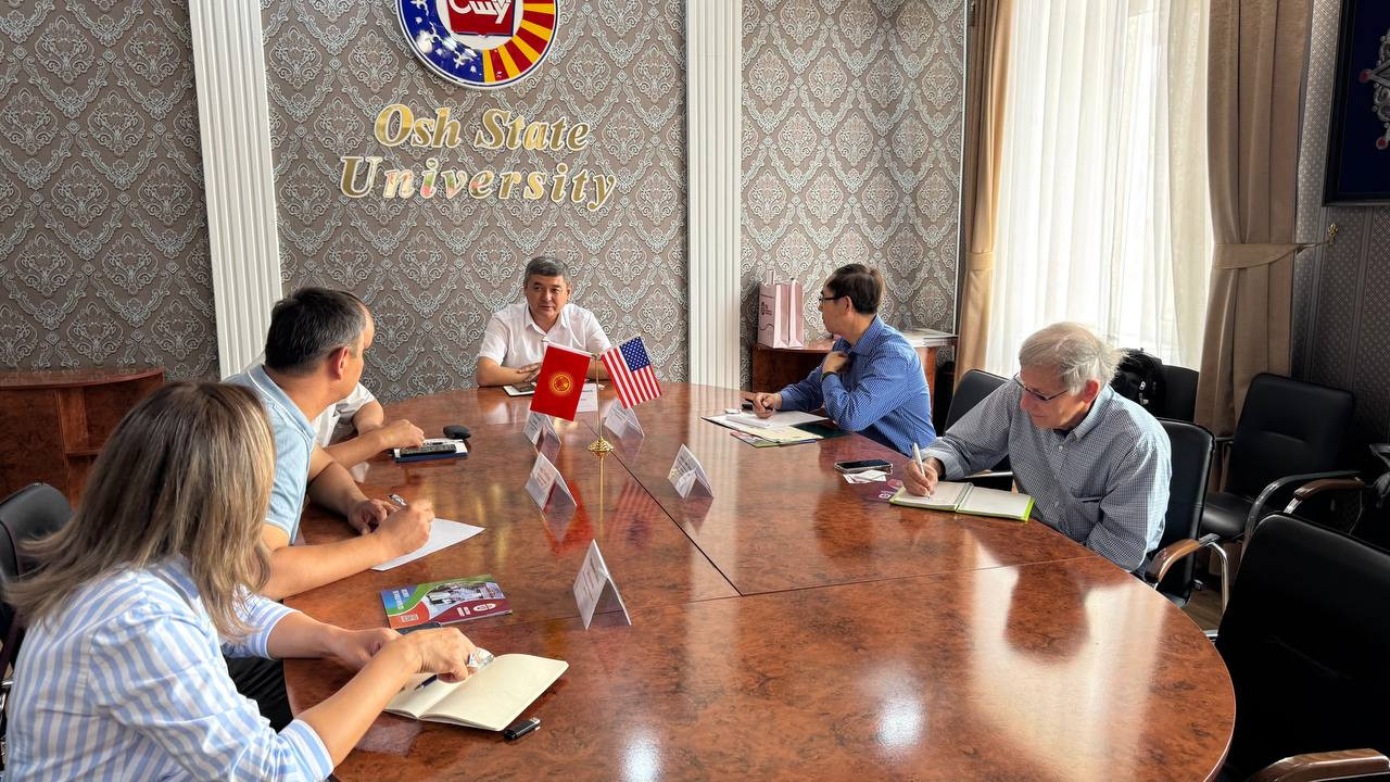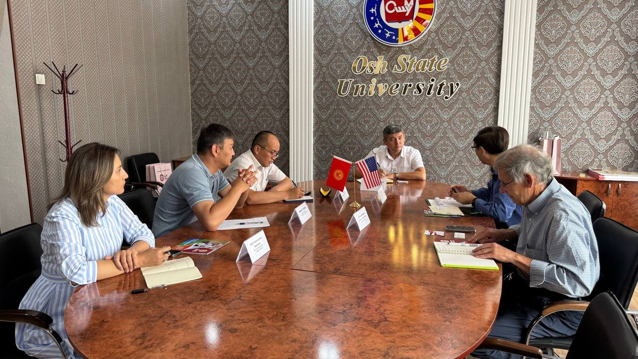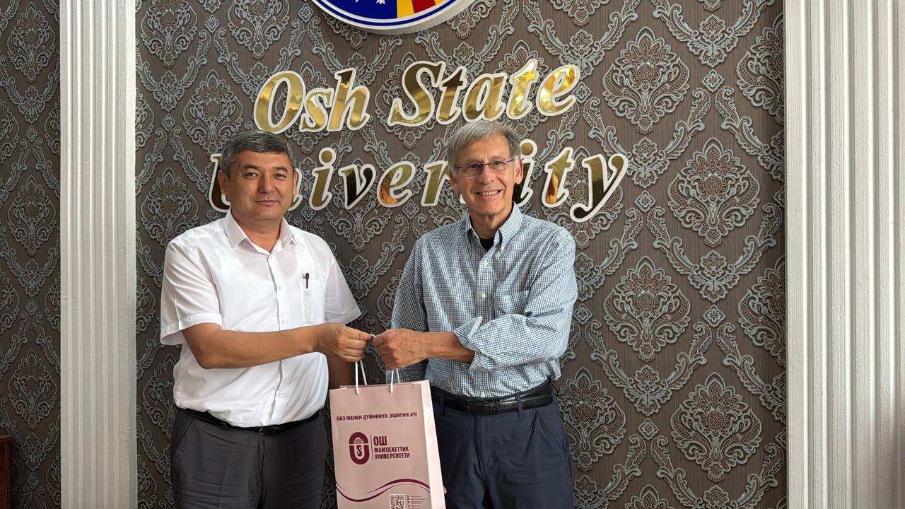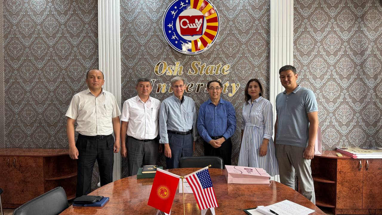 Почетный профессор Мичиганского государственного университета (США) Стивен Пуэпке и профессор Цзяго Ци, директор Азиатского центра, посетили Ошский государственный университет сегодня, 20 июня.