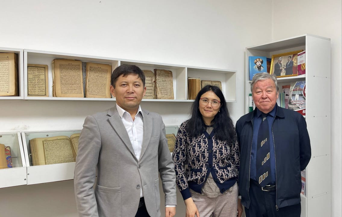 Во второй части дня Аксана Исмаилбекова встретилась с заведующим кафедрой востоковедения Елесом Еркебаевым и руководителем Фонда «Восточные рукописи и наследие» Байболотом Абытовым. Они обсудили будущие совместные научные проекты.