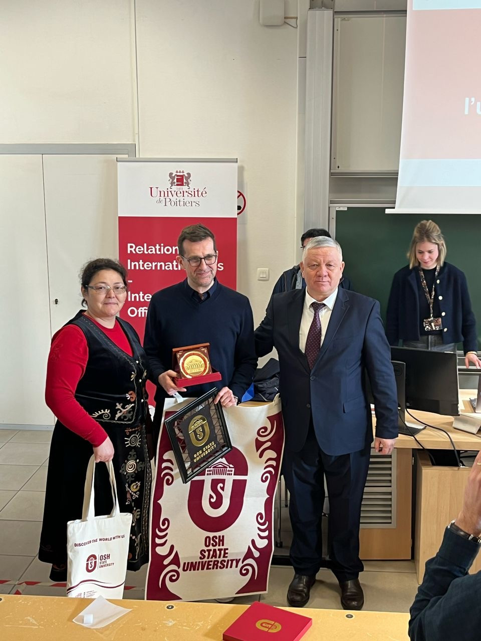 Делегация ОшГУ встретилась с вице-президентом по международным связям университета Пуатье Стефаном Мотте. Стороны обсудили вопросы расширения сотрудничества, в том числе реализации совместных образовательных двойного диплома в рамках действующего двустороннего соглашения.