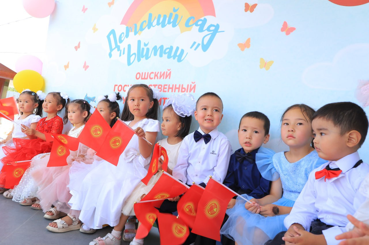 Детский сад «Ыйман» Ошского государственного университета воспитывает и обучает детей с упором на многоязичие. Учитывая возрастные особенности детей, преподаются английский, арабский, турецкий языки. В старшей и подготовительной группах работают кружки хореографии для девочек и самбо для мальчиков. В настоящее время прием и обучение детей осуществляется в 3 группах.