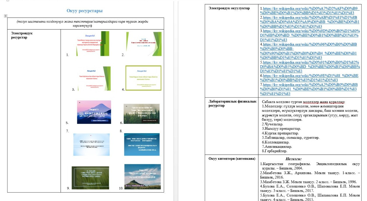 Учебная программа обновлена электронными ресурсами, презентациями, слайдами и ссылками на каждую тему, что создает условия для удобного и доступного усвоения студентами учебных материалов. Этот метод позволяет студентам получать доступ к необходимым материалам по прямым ссылкам, без необходимости поиска дополнительной информации по теме.