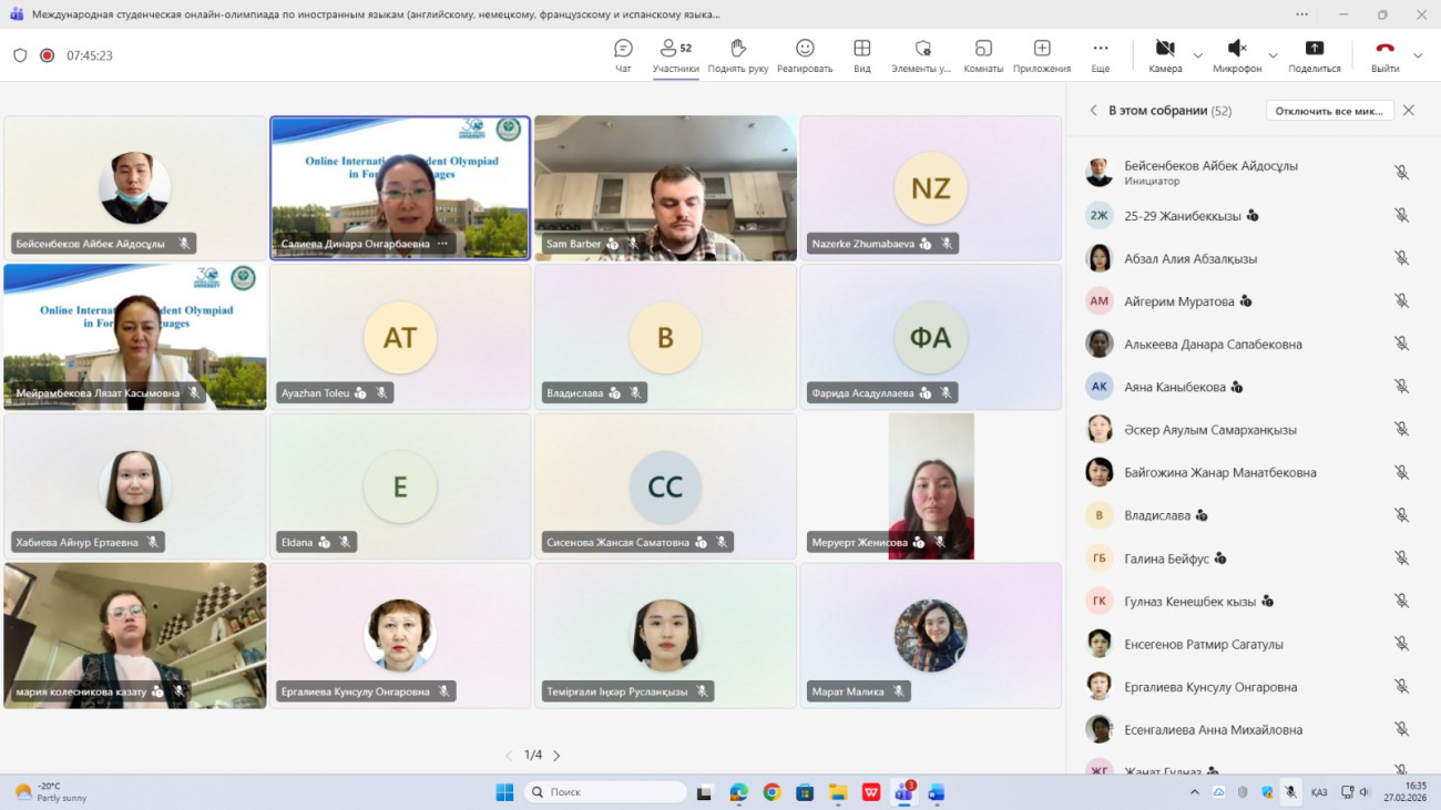 27 февраля Евразийский национальный университет имени Л.Н. Гумилёва провел международную онлайн-олимпиаду по английскому, немецкому, французскому и испанскому языкам. В ней приняли участие студенты отделения европейской и американской интеграции Высшей школы международных образовательных программ Ошского государственного университета. В результате Нурзада Нурбек кызы заняла 2-е место по немецкому языку, а Рамиль Мухаммедов – 3-е место по английскому языку.