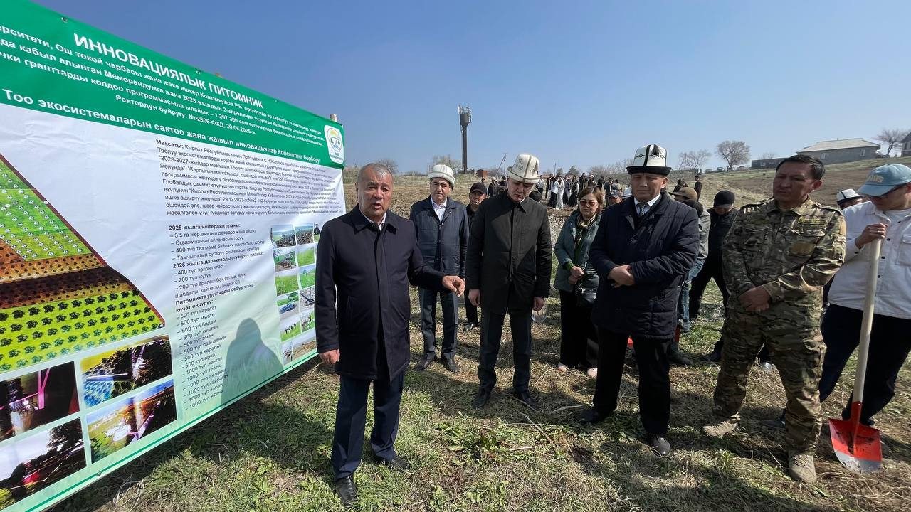 Облус башчысына алгач питомниктин түзүлүшү жана анын максаттары тууралуу  Тоо экосистемаларын сактоо жана жашыл инновациялар Консалтинг борборунун директору, долбоордун аткаруучусу Абдижапар Аккулов маалымат берди. Аманкан Кенжебаев ОшМУнун  тоо экосистемасын сактоо жана жашыл аймактарды көбөйтүү багытындагы иштерге жогору баа берип, мындай демилгелерди ар дайым колдоого даяр экенин билдирди.