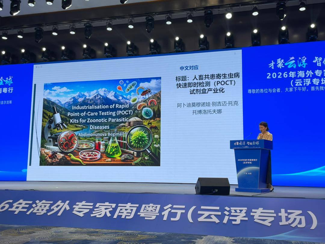 Etkinlik sırasında Abdimomunova, zoonotik paraziter hastalıkların hızlı tespiti için tanı testlerinin uygulanmasına yönelik araştırmalarını sundu. Parazitoloji ve bulaşıcı hastalıklarda kullanılan modern hızlı tanı yöntemlerine (POCT) odaklanarak, bilimsel gelişmelerin sağlık sistemine entegrasyon yollarını belirtti.
