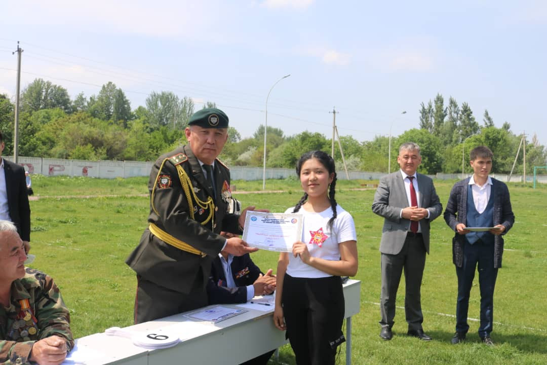 9-май-Улуу Жеңиш майрамына карата ОшМУнун мектеп-гимназияларынын 10-класстарынын арасында аскерге чейинки даярдык сабагы боюнча мелдеш өттү.