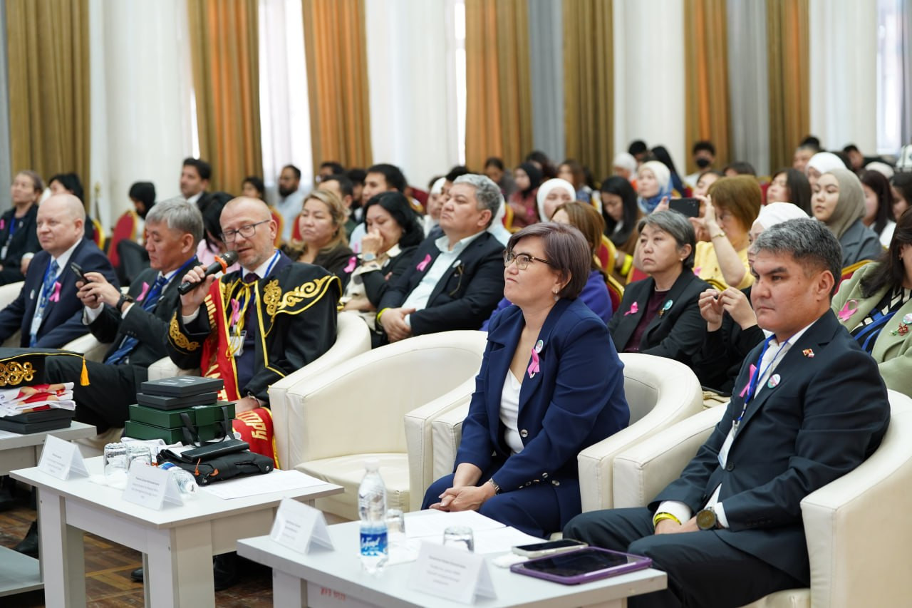 Afterward, the event continued in the university’s main conference hall. Presentations were delivered on the project results, its significance, and implementation process. A joint Kyrgyz–Polish preventive program on breast cancer prevention was also presented, and its role in the healthcare system was highlighted.