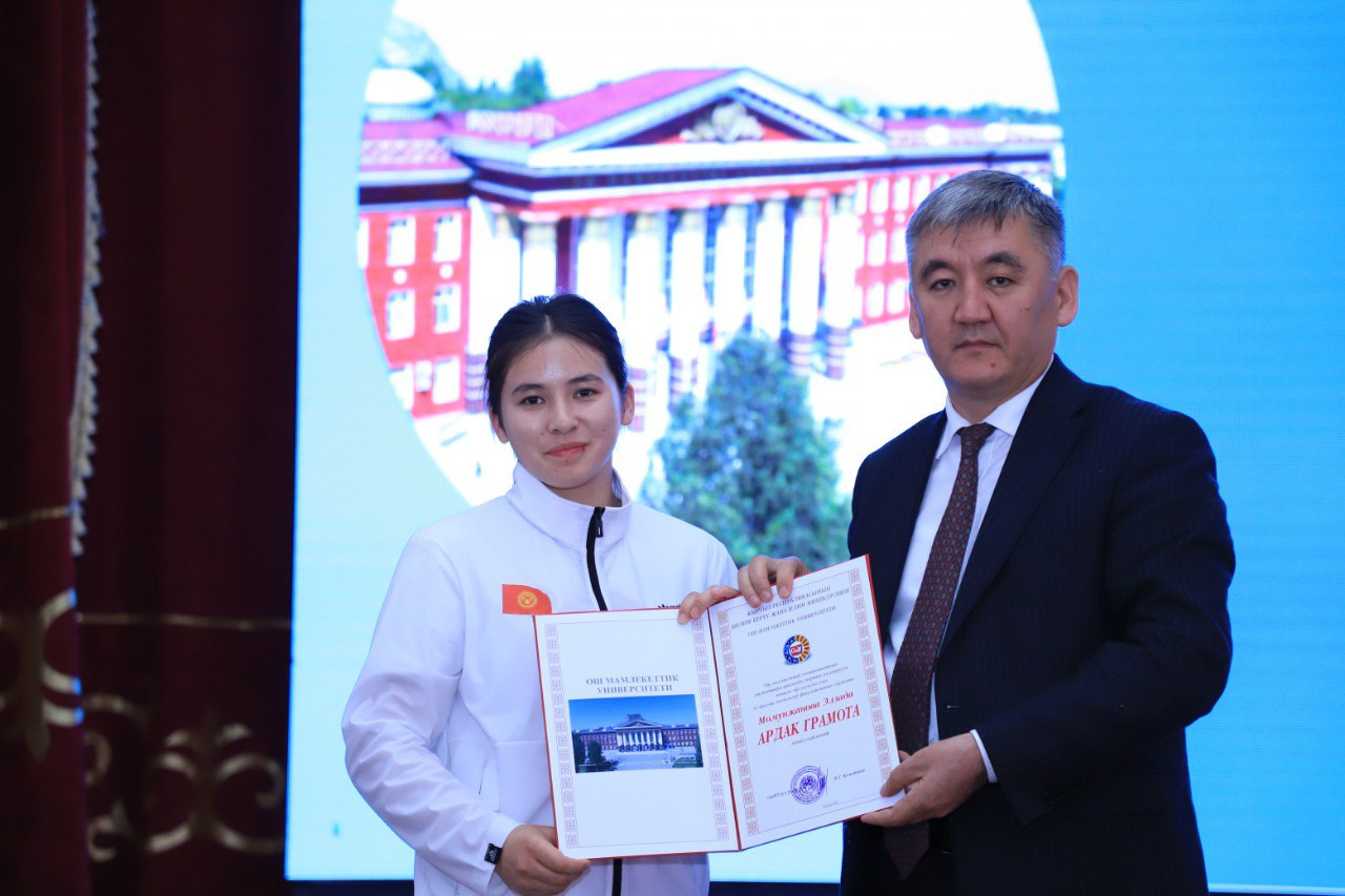 Мындан сырткары кыргыз күрөшү,  дзюдо боюнча Кыргыз Республикасынын чемпионатында, алыш  бел боо күрөшү, тогуз коргоол  боюнча Азия чемпионатында  байгелүү 1-2-3-орундарды ээлеген спортчу студенттерди куттуктады.