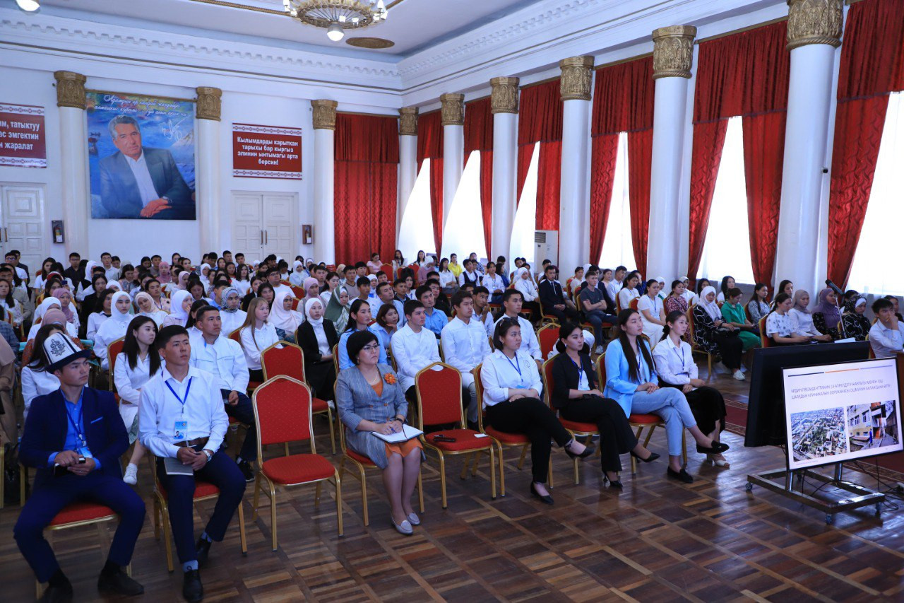 Another event was hosted at the university as part of the project "Hour with the Leader." Kudaiberdi Kozhobekov, rector of Osh State University, was the meeting's special guest. The leader briefed the students on the university's operations in several areas, introduced them to upcoming initiatives, and underlined that students are the primary focus of the work.