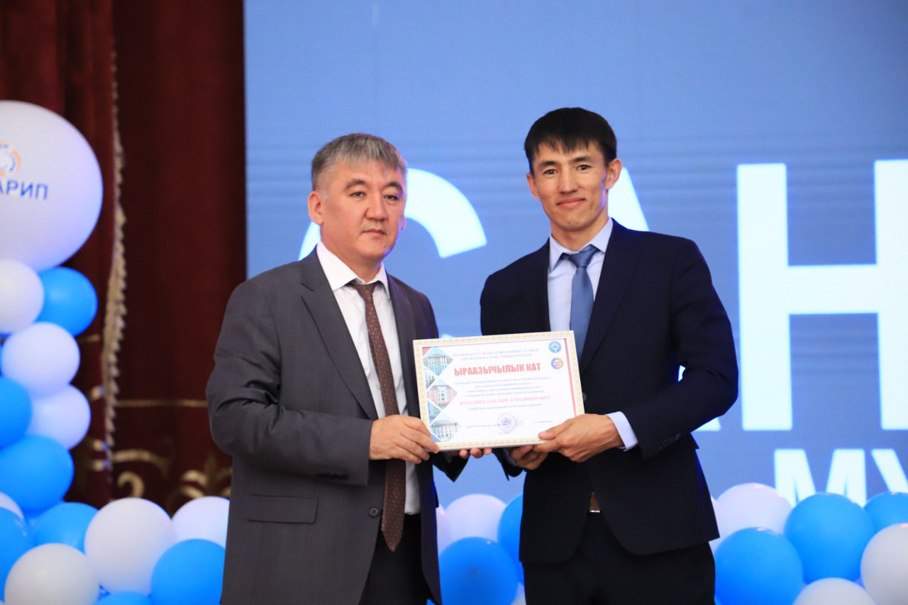 On June 7, the award ceremony for the competition "Digital Teacher-Dubai 3" was held in Osh State University's main building. Asylbek Madaliev, Director of the Digital Academy Training Center, organizer of the Digital Teacher Tournament, honorary graduate of Osh State University, and Batken native, hosted the competition for the third time. During the event, Kudaiberdi Kozhobekov, the Rector of Osh State University, presented Asylbek Madaliev with a letter of gratitude, praising the work of the honored graduate of Osh State University, who encourages teachers in the country and contributes to the development of knowledge and experience.