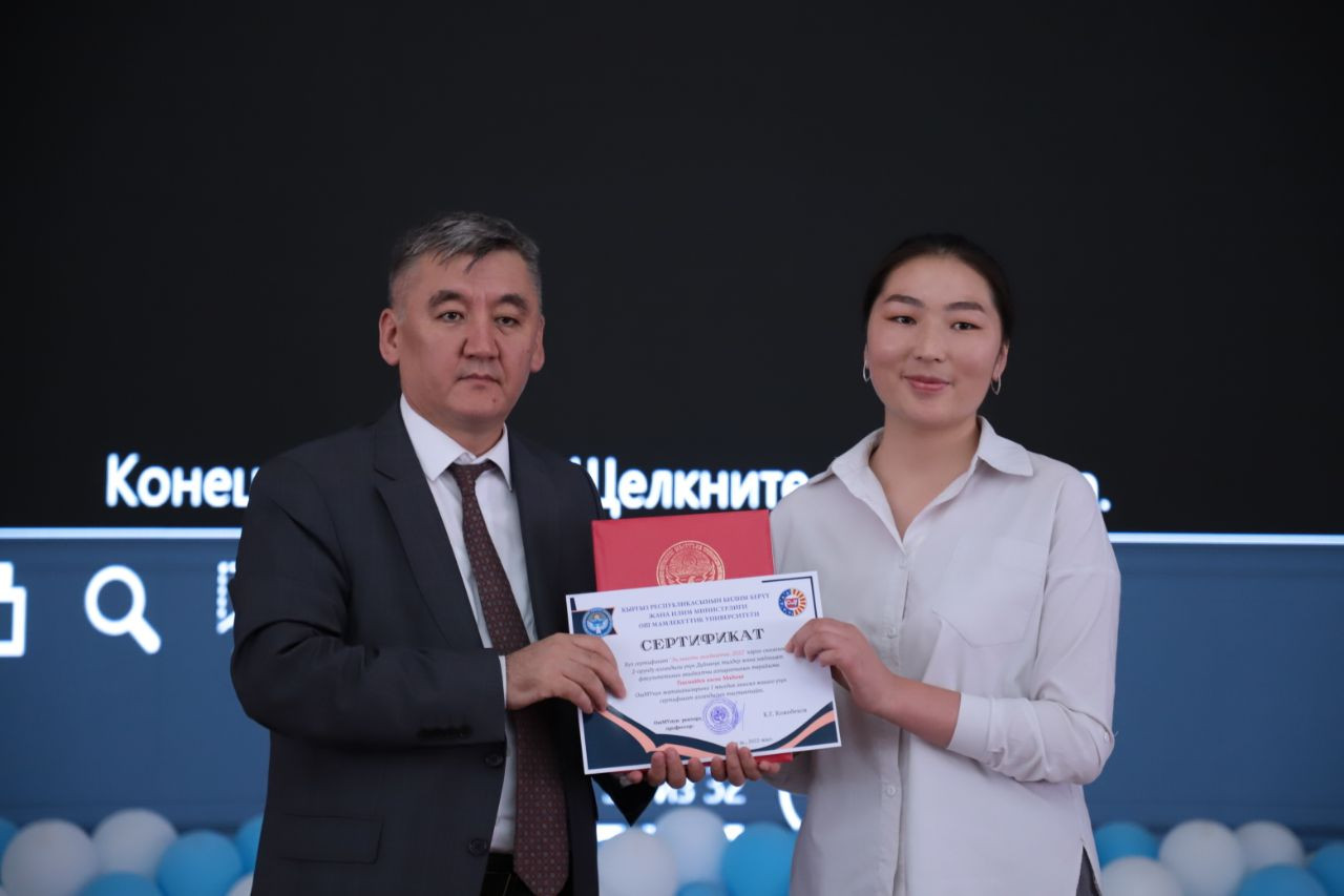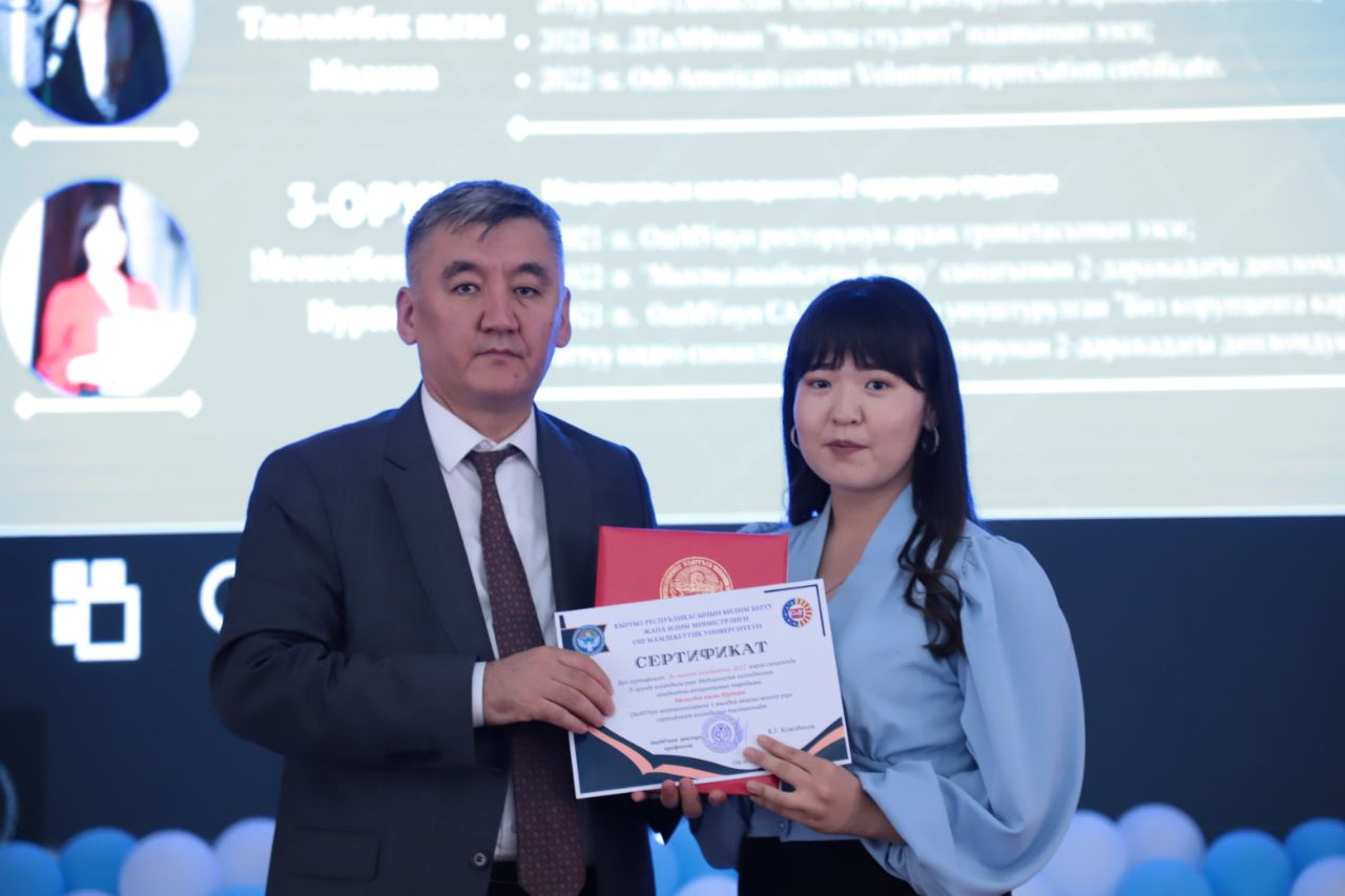 Madina Toktomatova, a student of the Faculty of Mathematics and Information Technology, Madina Taalaibek kyzy, a student of the Faculty of World Languages and Culture, and Nurperi Melisbek kyzy, a student of the Medical College, were the winners of the “Best Ombudsman” competition. During the ceremony, the Young Scientist project winners were also recognized.