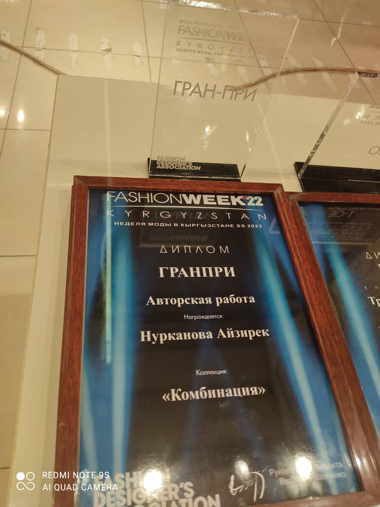 The top prize went to Aizirek Nurkanova, a fourth-year student who entered the "Combination" collection. Akinai Kushbakova, a senior lecturer in the Department of Design, is its director.