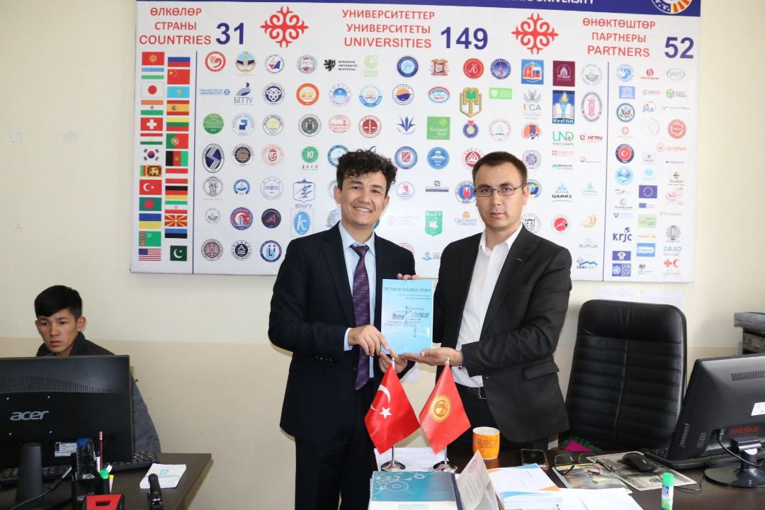 Kurdaiberdi Kojobekov, the rector of Osh State University, welcomed Professor of English Language Teaching Kurshat Jesur from Onsekiz Mart University in Çanakkale, Turkey. The two universities signed a memorandum of cooperation during the conference.