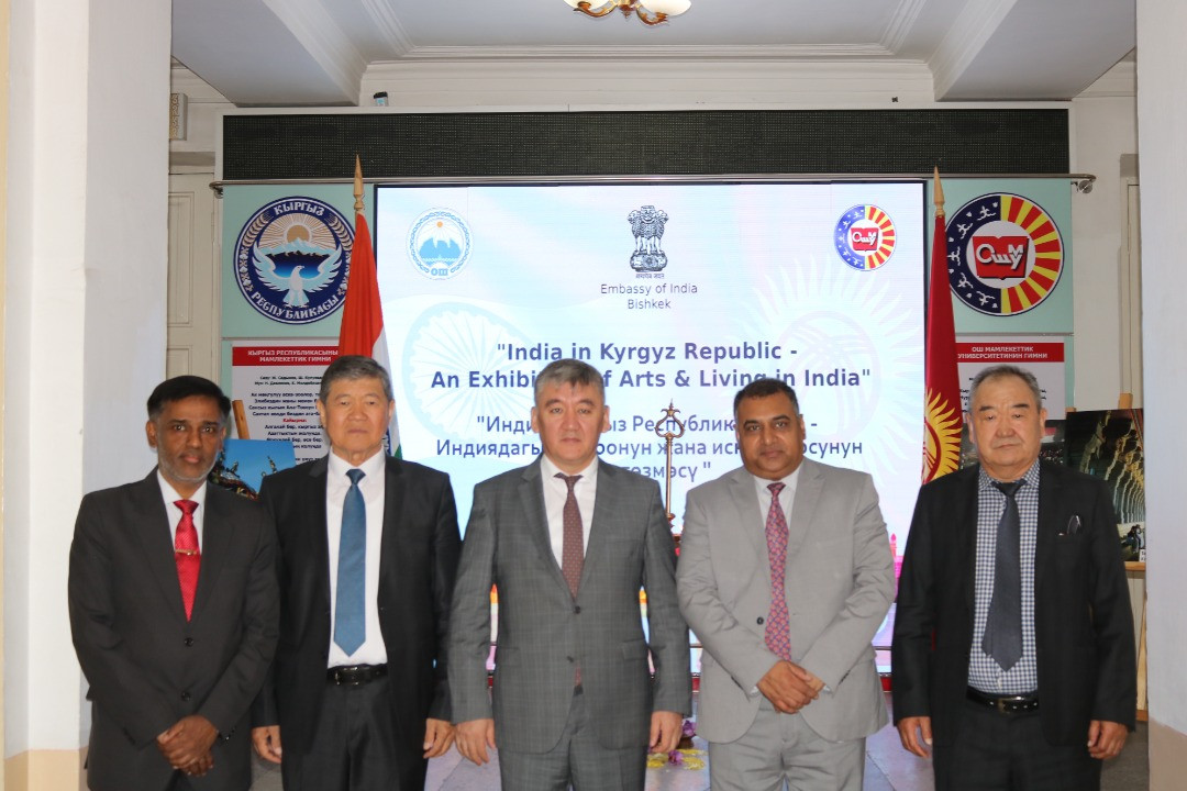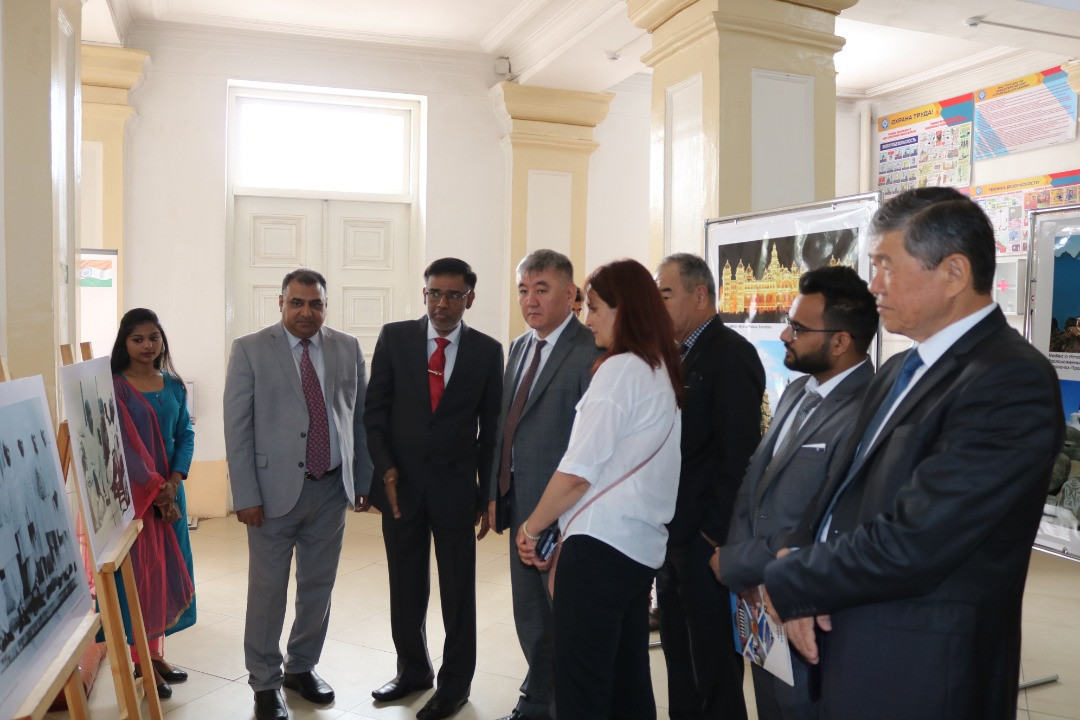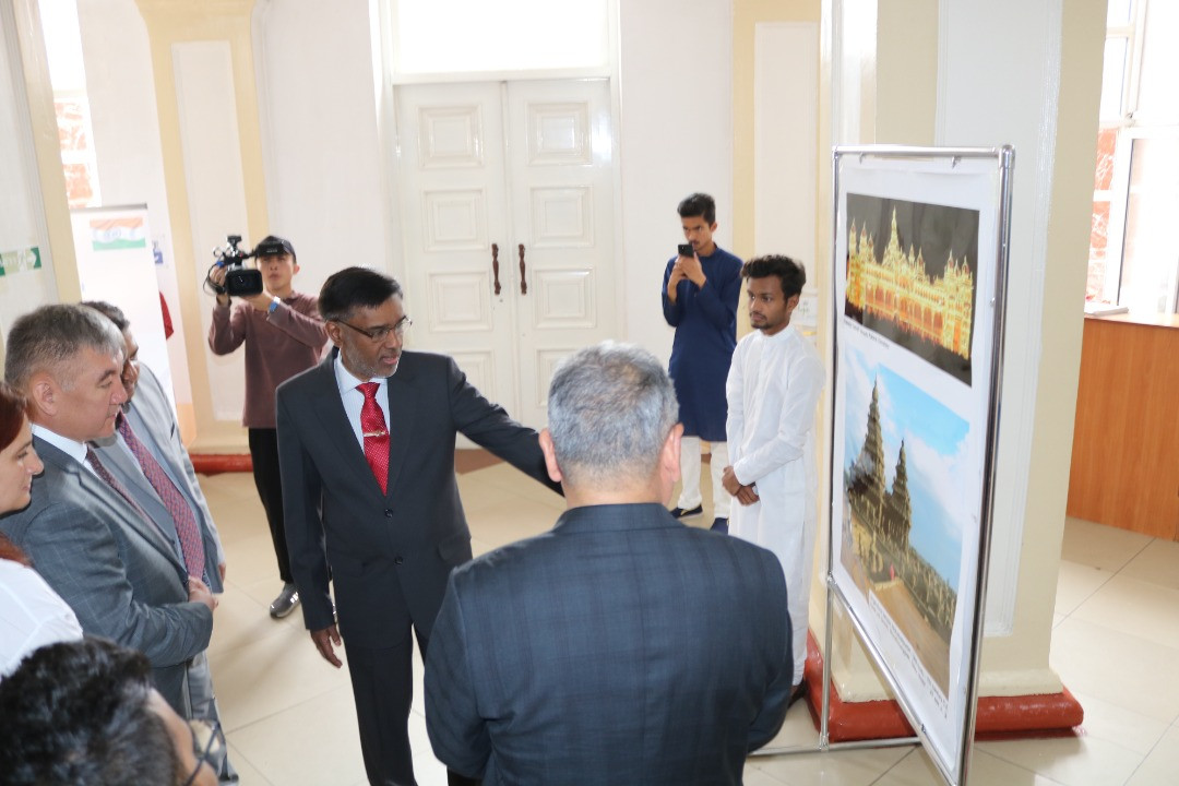 Rajesh Kumar and Rector Kudaiberdi Kojobekov took part in the launch of a photo exhibition on the history, culture, and architecture of India, titled "India in the Kyrgyz Republic - an exhibition of life and art in India."