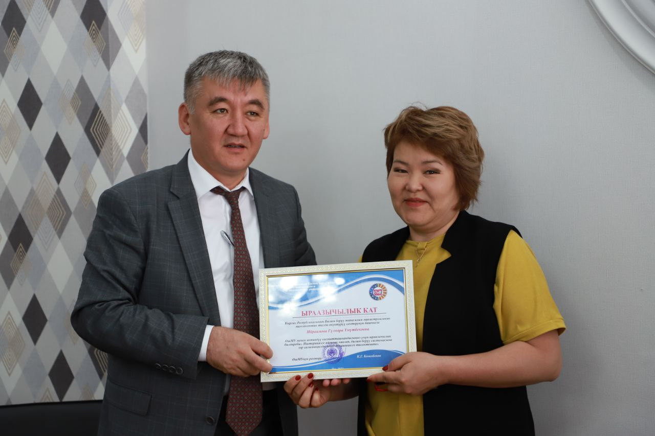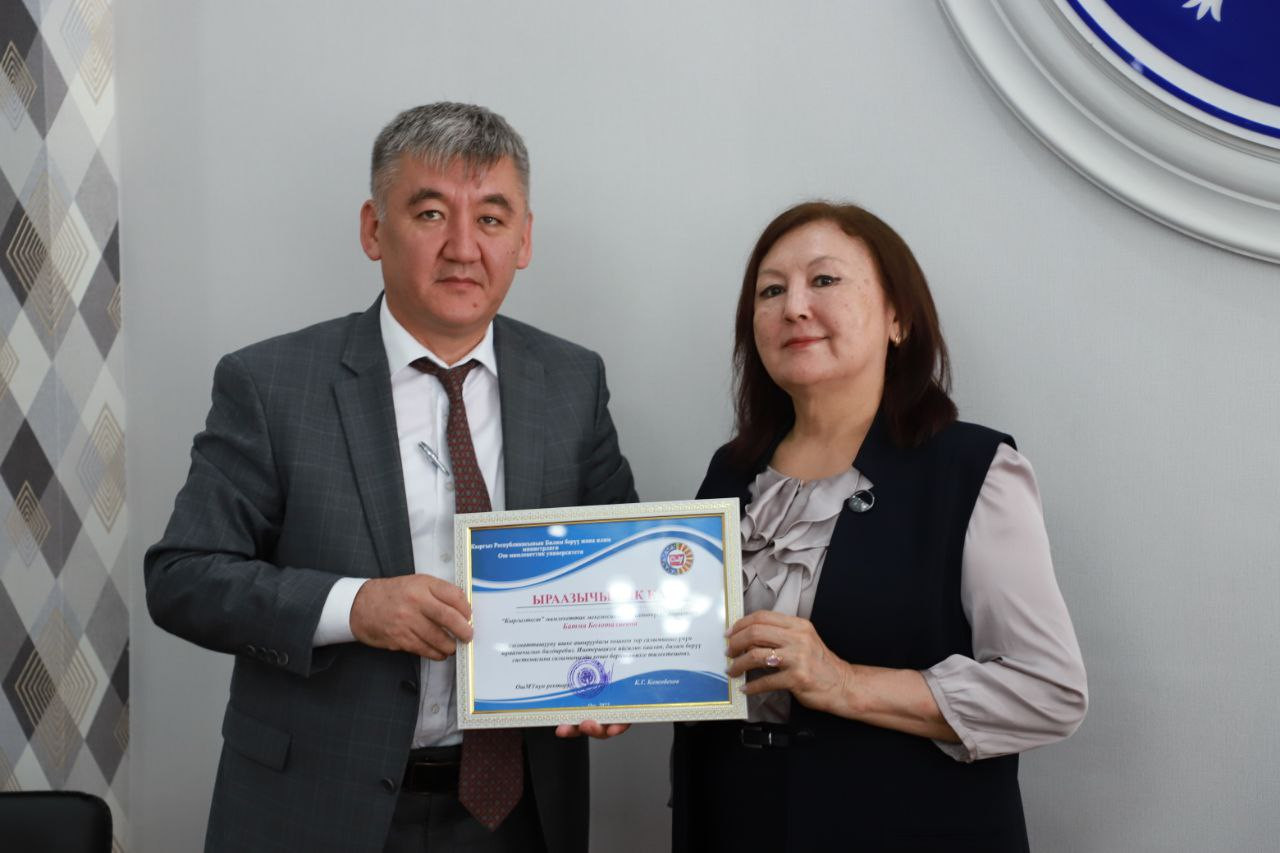 G. Ibraimova, head of the State Language Development Sector of the Ministry of Education and Science, and B. Topoeva-Stavinskaya, head of the “Kyrgyztest” National Institution, received letters of thanks from the Rector for active cooperation.