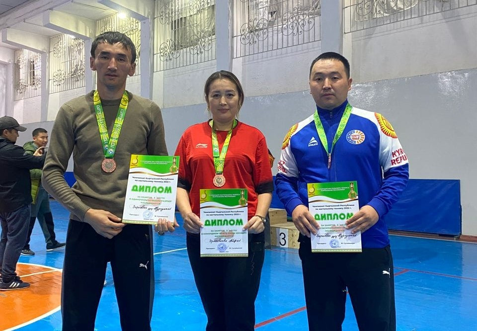 4-6-ноябрда Бишкекте стол тенниси боюнча өлкө чемпионаты өттү. Ага ОшМУнун Дене тарбия факультетинин окутуучусу Нурсултан Зарылбек уулу, Бизнес жана менеджмент факультетинин окутуучусу Айжан Эрмекбаева жана STEM инновациялык колледжнин окутуучусу Урматбек Саматов катышты.