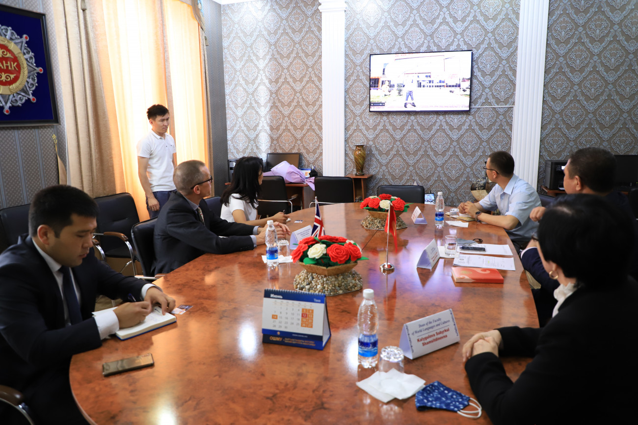 Жолугушууда Улуу Британиянын жогорку окуу жайлары менен кызматташуу алакаларын түзүү, билим берүү программаларын ишке ашыруу, окутуучулардын, студенттердин академиялык мобилдүүлүгүн арттыруу багыттары боюнча сөз болду.