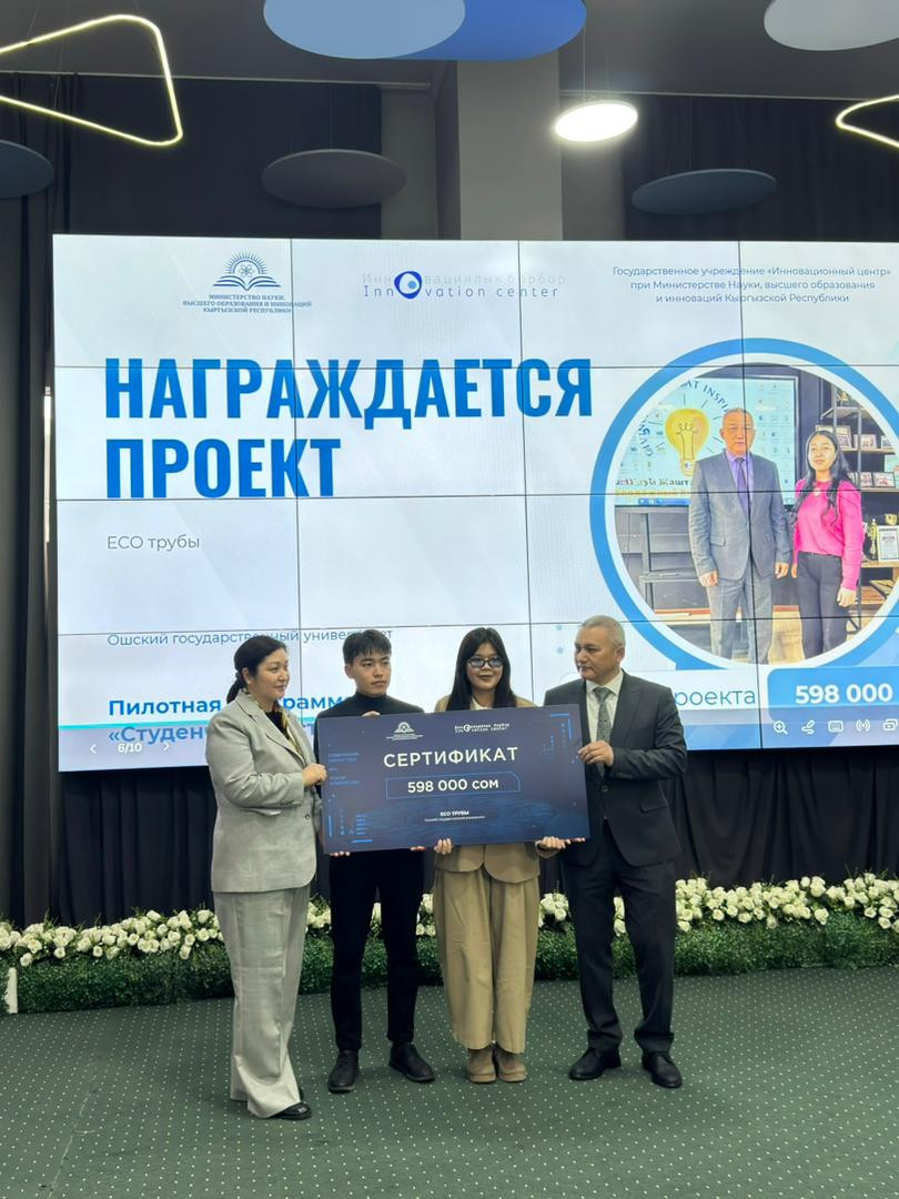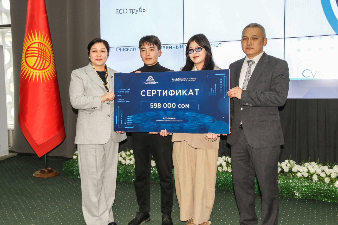 Ош мамлекеттик университетинин студенттери жаштар ишкерчилигин колдоого багытталган «Студенттик стартап – 2025» республикалык конкурсунда жеңүүчү болду. Натыйжада алар стартап-долбоорлорун ишке ашырууга мамлекеттик гранттарды утуп алышты.
