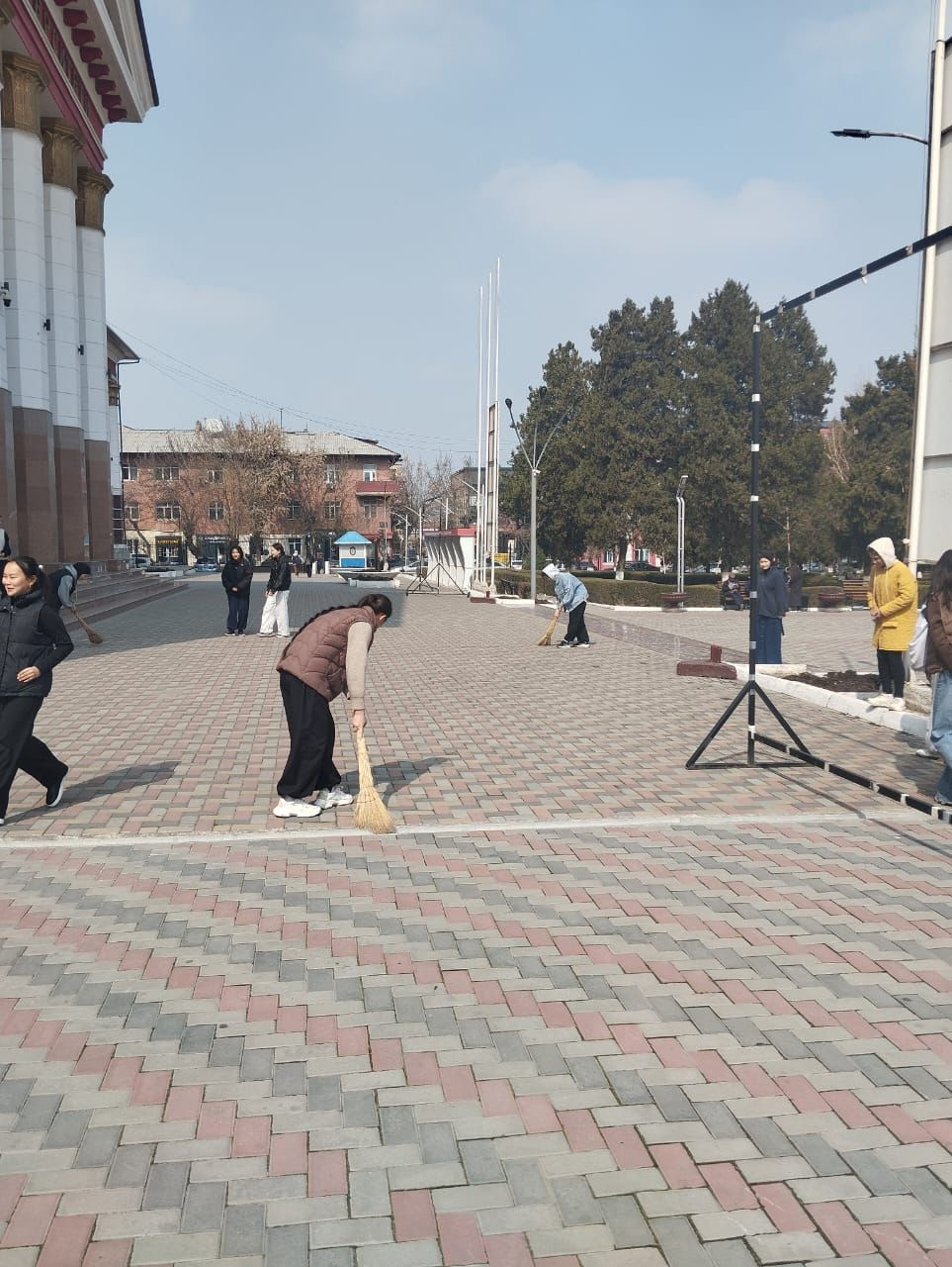 Иш-чаранын жүрүшүндө айлана-чөйрөнү тазалоо, аймактарды көрктөндүрүү жана жашылдандыруу иштерине өзгөчө көңүл бурулду. Ак-Буура дарыясынын жээктеринде санитардык тазалоо иштери жүргүзүлүп, белгиленген аймактарда ишембилик өткөрүлдү. Мындан тышкары шаардагы көчөлөрдү, гүл бакчаларды жана сейил бактарды тазалоо иштерине да университет жамааты активдүү катышууда.