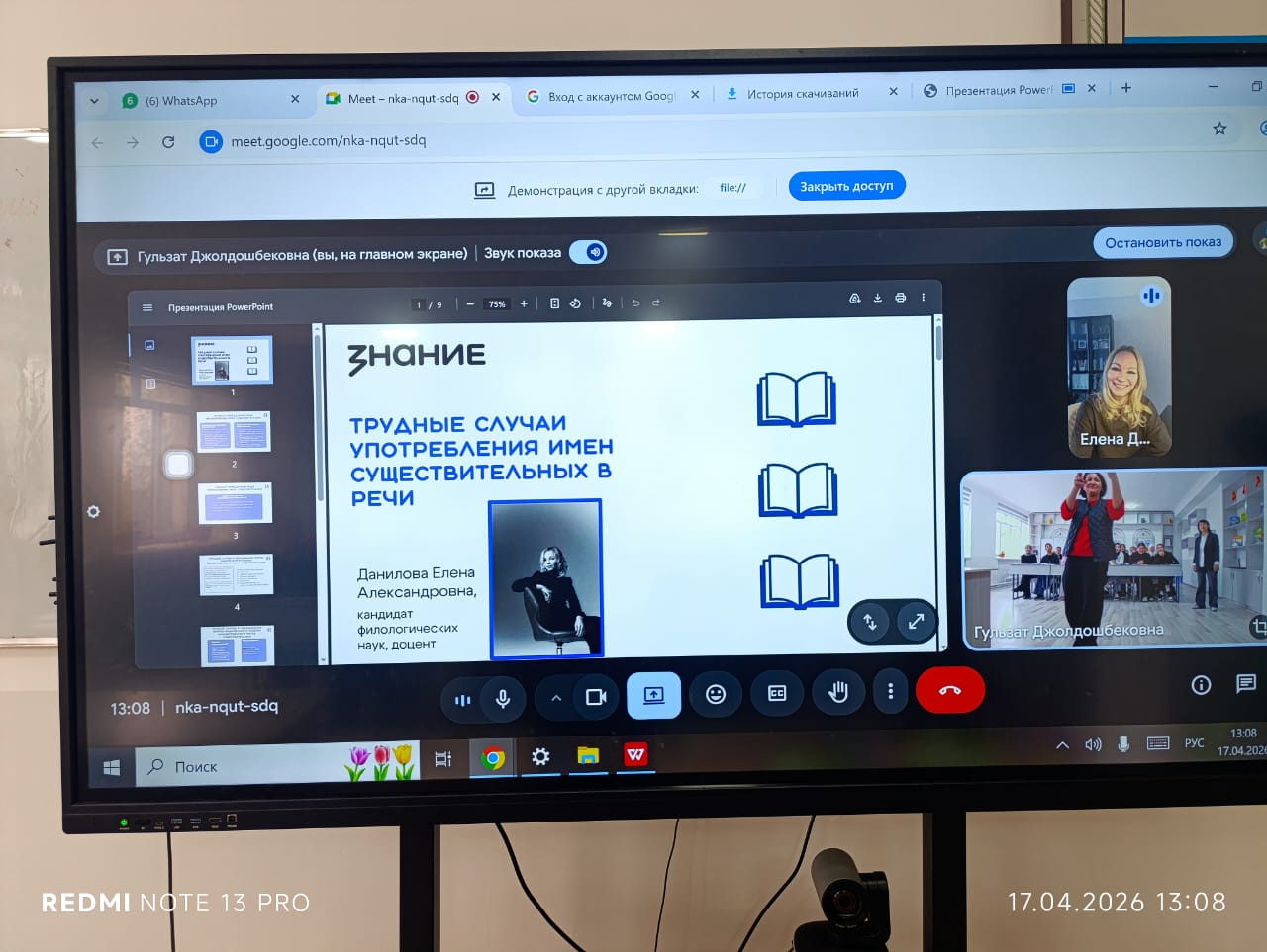 Студенттер орус тилиндеги зат атоочтордун илик жөндөмөсүндөгү варианттык формаларын колдонуу, өздөштүрүлгөн сөздөрдүн жынысын аныктоо сыяктуу татаал темалар боюнча кеңири маалымат алышты. Диалог форматында өткөн жолугушуу алардын чоң кызыгуусун жаратып, лекторго суроолорун берип, жоопторду алышты.