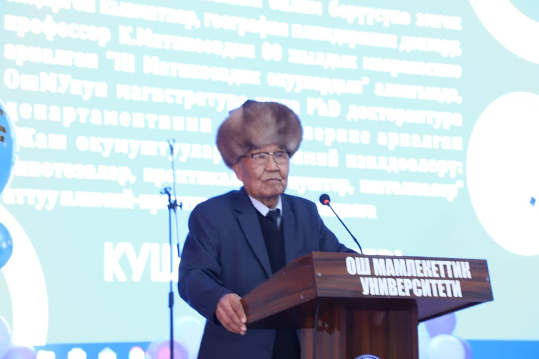ОшМУнун магистратура жана PhD докторантура департаменти 7-декабрда Кыргыз Республикасынын билим берүүсүнѳ эмгек сиңирген кызматкер, география илимдеринин доктору, профессор Курманалы Матикеевдин 80 жылдык маарекесине арналган “III - Матикеевдик окуулардын” алкагында “Жаш окумуштуулардын илимий изилдѳѳлѳрү: гипотезалар, практикалык сунуштар, иштелмелер” аттуу илимий-практикалык конференция өткөрдү.
