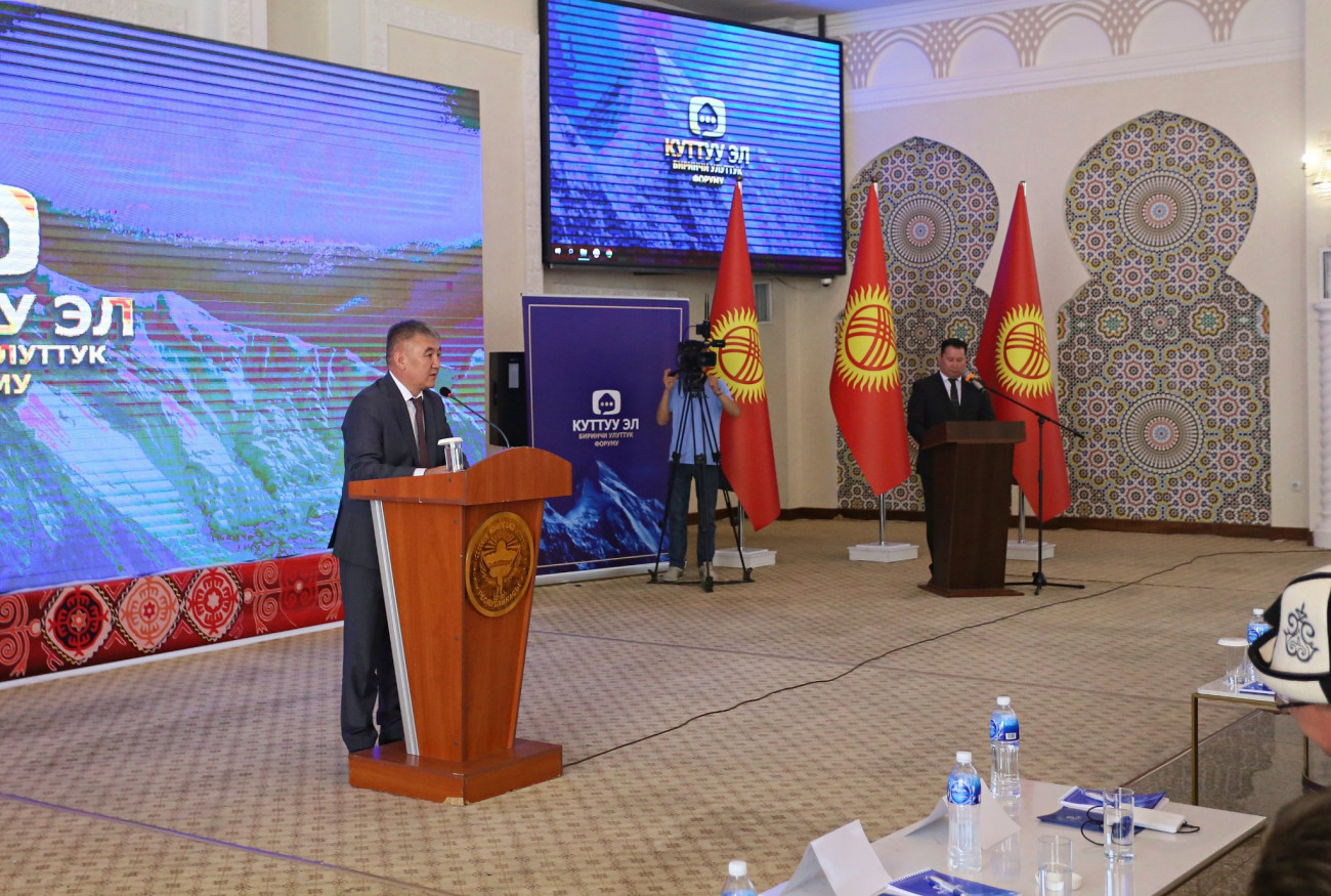 Ош шаарында 2 күнгө созулган “Куттуу эл” биринчи улуттук форуму өттү. КР Президентинин “Инсандын руханий-адеп-ахлактык өнүгүүсү жана дене тарбиясы жөнүндөгү” Жарлыгынын алкагында өтүп жаткан “Куттуу эл” биринчи улуттук форумуна Кыргыз Республикасынын Мамлекеттик катчысы Сүйүнбек Касмамбетов, Ош шаарынын мэри Алмаз Мамбетов, белгилүү окумуштуулар, жогорку окуу жайлардын ректорлору, ар кайсы тармактын эксперттери, саясатчылар, ишкерлер, активдүү жаштар жана жарандык коомдун өкүлдөрү катышты.