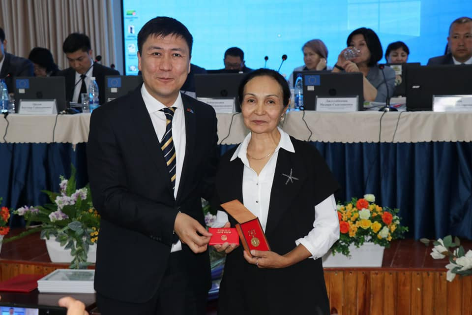 Мындан сырткары министр Алмазбек Бейшеналиев ишмердүүлүгүндө өзгөчөлөнгөн Баткен облусунун 25 билим берүү кызматкерине төш белги жана ардак грамоталарды тапшырып, айрым мектептерге беш даанадан компьютер белекке берди.