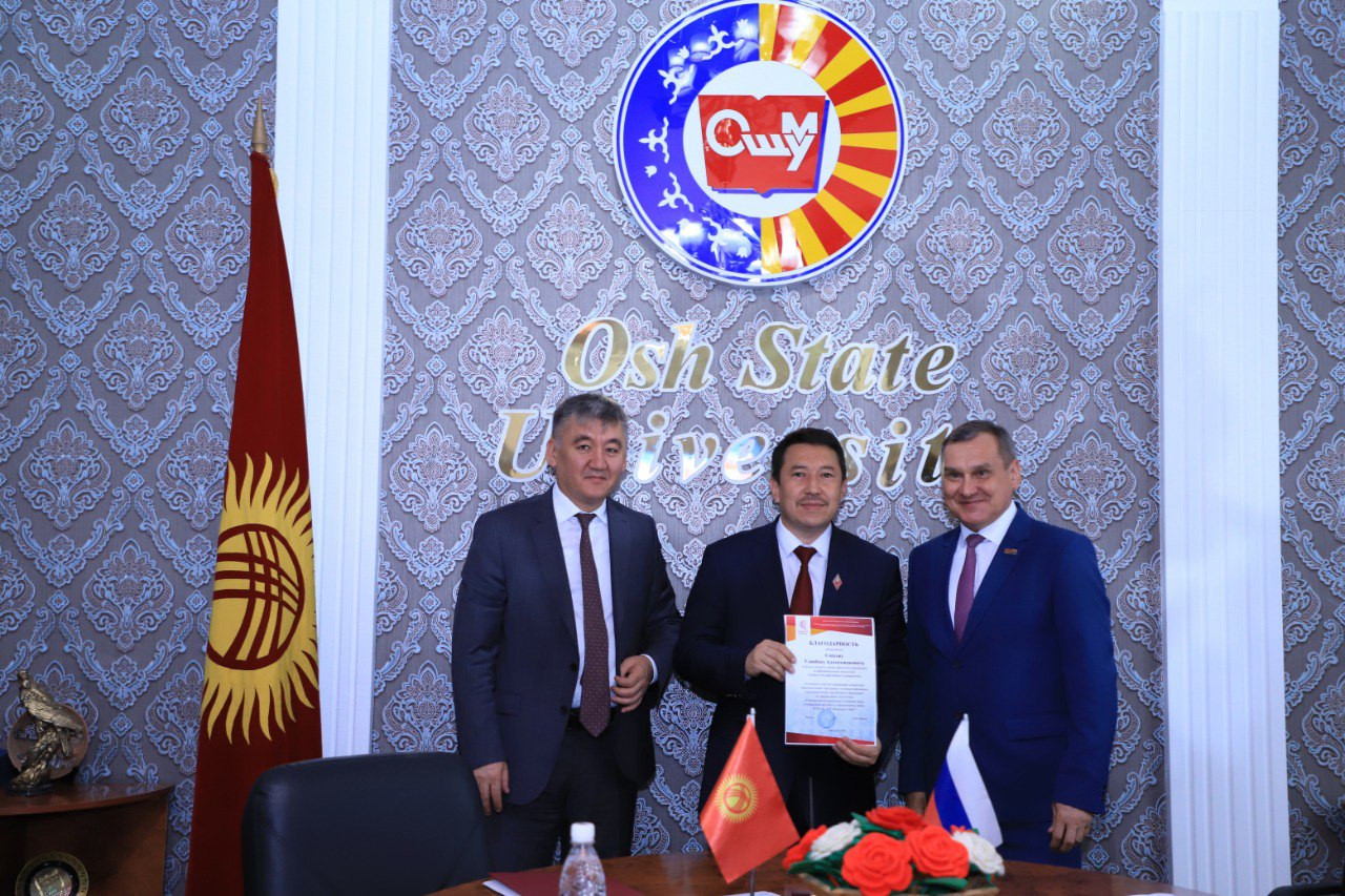 И.Я. Яковлев атындагы Чуваш мамлекеттик педагогикалык университетинин ректору Владимир Иванов жана илимий жана инновациялык иштер башкармалыгынын башчысы Александр Кириллов 28-майда иш сапары менен ОшМУга келди.