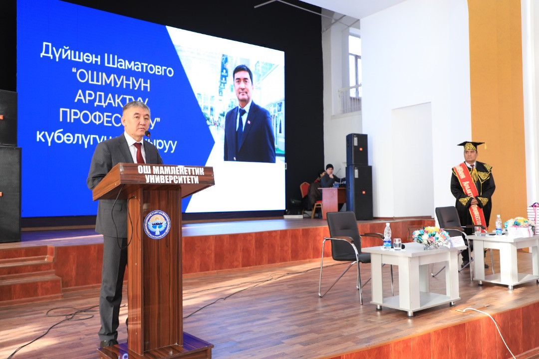 At the award ceremony, Osh State University president Kudaiberdi Kozhobekov said that the university is proud of D. Shamatov who started his career at OshSU and became a well-known scientist and an expert on education on a global scale. Along with this, he highlighted Duishon Shamatov's contributions to the improvement of educational quality, the introduction of new educational technology, and the professional development of the OshSU lecturers.