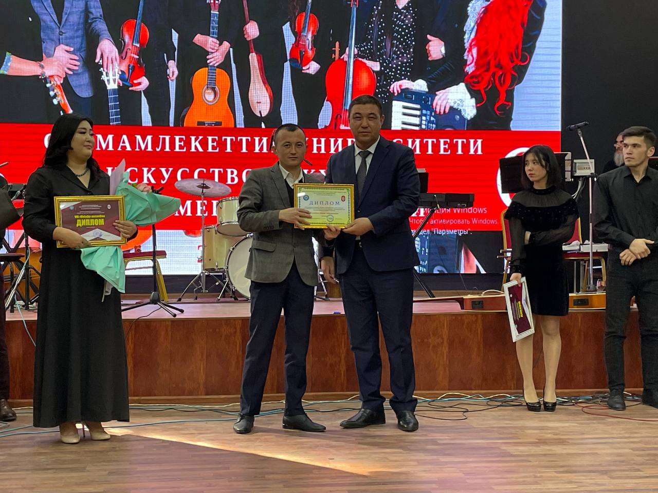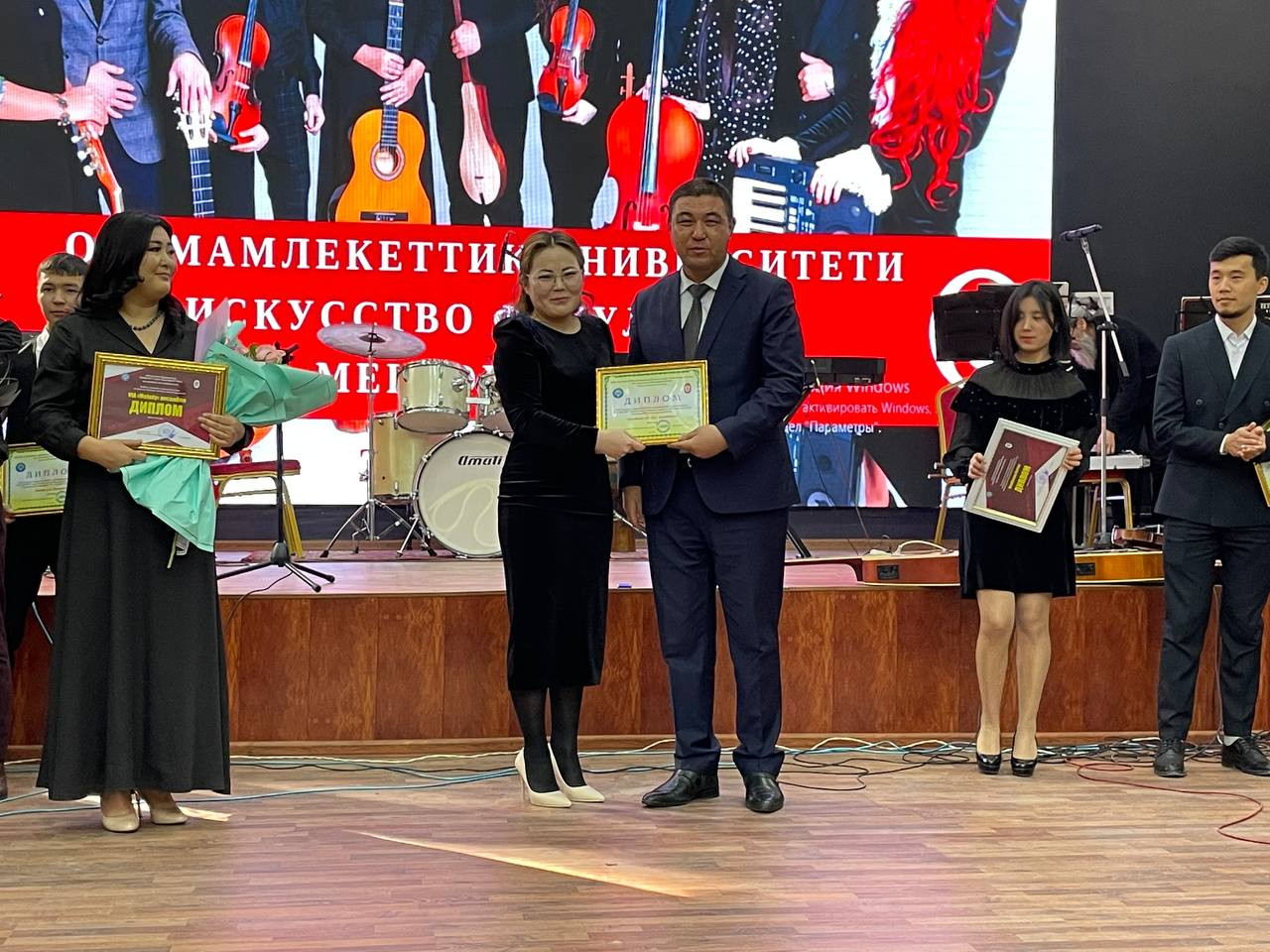 The vice-rector for academic affairs of OshSU, Zamirbek Bozhonov, wished the pop group "VIA melody" creative success and presented them the letters of gratitude and cash prizes on behalf of the university.
