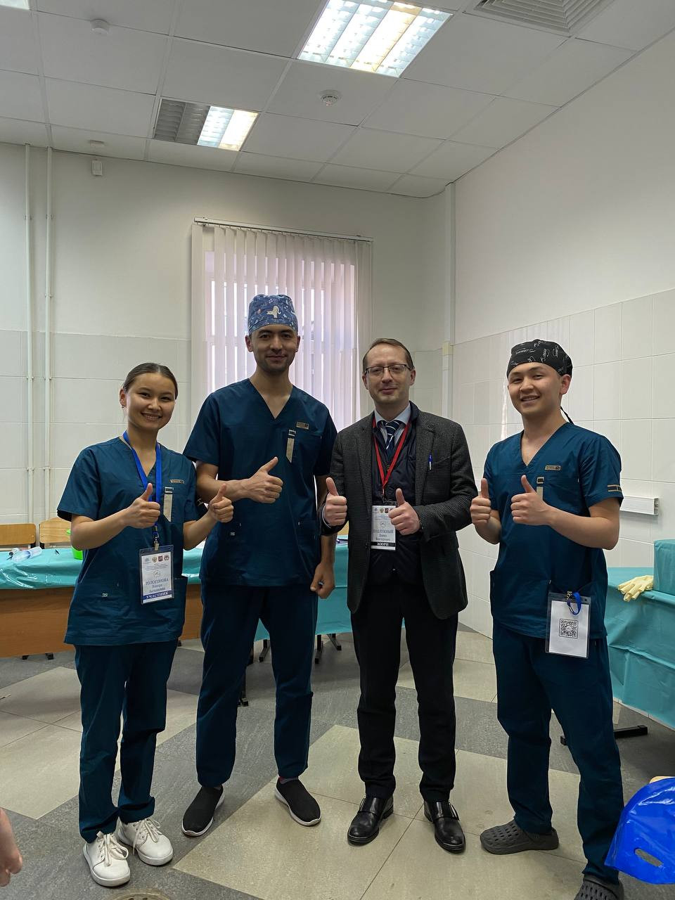 The OshSU team participated under the leadership of the head of the Faculty of Medicine's "Surgery" club, lecturers Bektur Erkinali uulu and Akylbek Shakirov. The team used a laparoscopic tool to execute a procedure on a hernia of the esophagus, which is one of the uncommon operations.