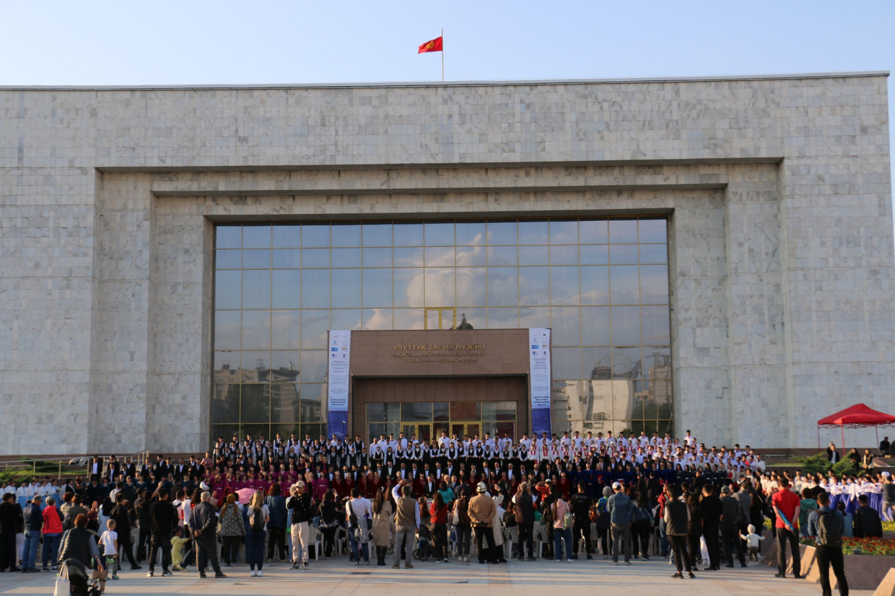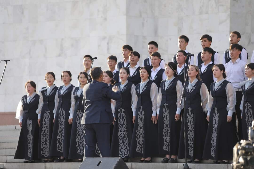Two teams from the Faculty of Arts at Osh State University performed songs by Kyrgyz and international composers as part of one of the 12 student choirs, totaling roughly 600 members from seven different regions and two cities in our country.