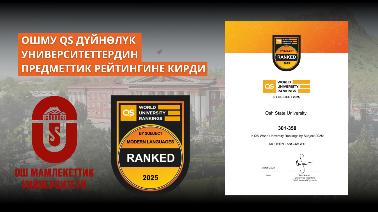 This recognition highlights the excellence of Osh State University’s educational and research programs in modern languages, reaffirming its commitment to academic quality and global engagement.