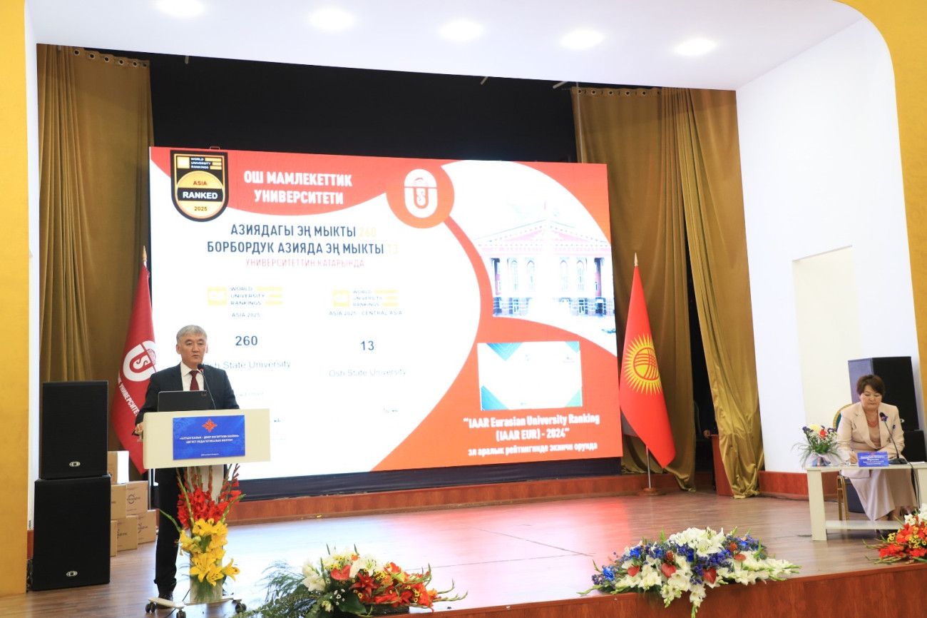 Ош шаарында өтүп жаткан «Алтын Казык – доор өзгөрткөн билим» август педагогикалык форумунда Ош мамлекеттик университетинин ректору Кудайберди Кожобеков 12 жылдык билим берүүгө өтүү шартында мектептер менен ЖОЖдордун өз ара аракеттешүүсү тууралуу баяндама жасады.