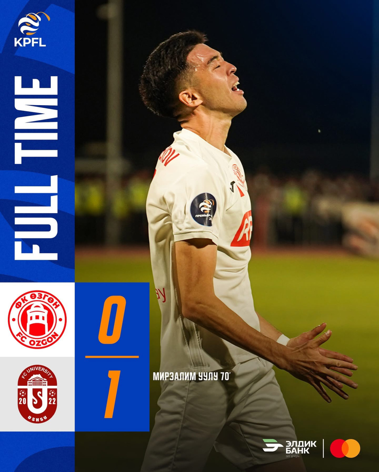 Беттеште “ОшМУ” командасы 0:1 эсеби менен жеңишке жетти. Жалгыз голдун ээси, «ОшМУ» командасынын футболчусу Бакытбек Мирзалим уулу беттештин "мыкты оюнчусу болду.